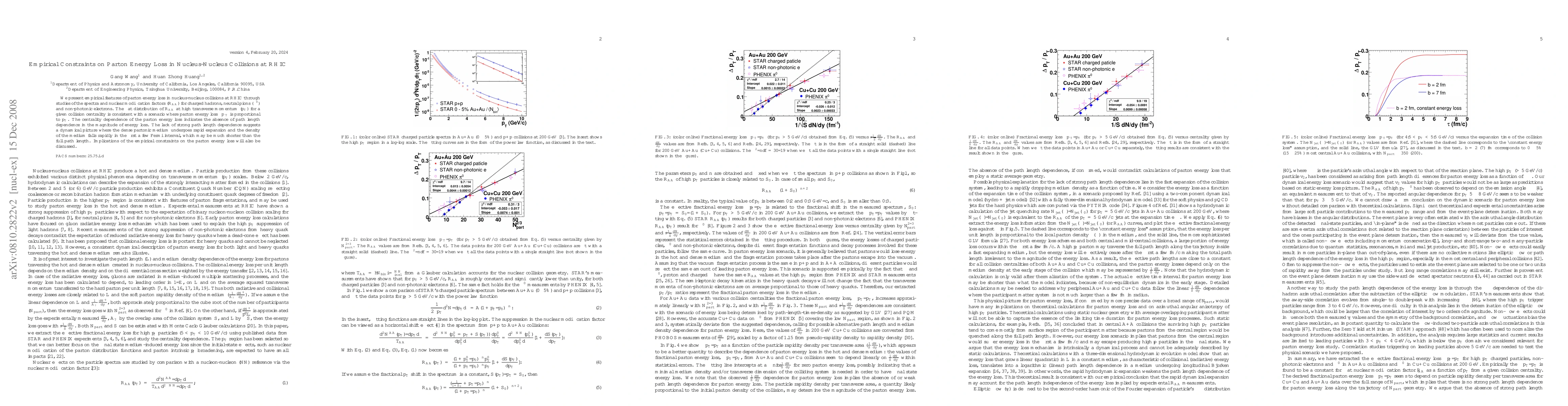 We present empirical features of parton energy loss in nucleus-nucleus collisions at RHIC through studies of the spectra and nuclear modification factors ($R_{AA}$) for charged hadrons, neutral pions ($\pi^0$) and non-photonic electrons. The flat distribution of $R_{AA}$ at high transverse momentum ($p_{T}$) for a given collision centrality is consistent with a scenario where parton energy loss $\Delta p_{T}$ is proportional to $p_{T}$. The centrality dependence of the parton energy loss indicates the absence of path length dependence in the magnitude of energy loss. The lack of strong path length dependence suggests a dynamical picture where the dense partonic medium undergoes rapid expansion and the density of the medium falls rapidly in the first a few Fermi interval, which may be much shorter than the full path length. Implications of the empirical constraints on the parton energy loss will also be discussed.