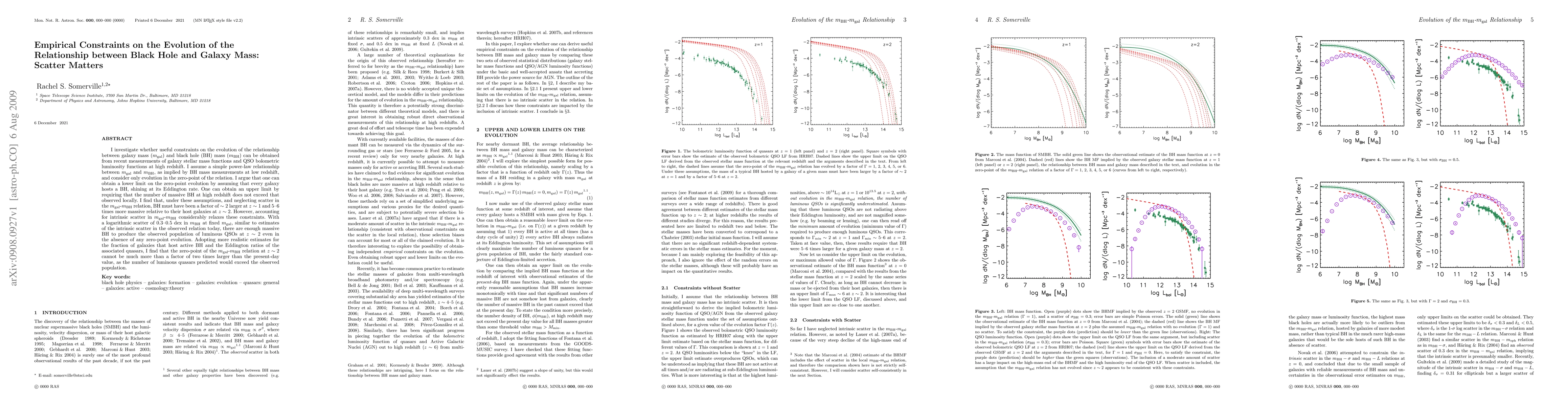 This paper examines the evolution of the relationship between black hole and galaxy mass, finding that intrinsic scatter in this relationship significantly relaxes the constraints on zero-point evolution. Without scatter, black holes would need to be much more massive relative to their host galaxies at high redshifts; however, with a realistic scatter of 0.3 to 0.5 dex, the observed quasar population can be explained without significant evolution.