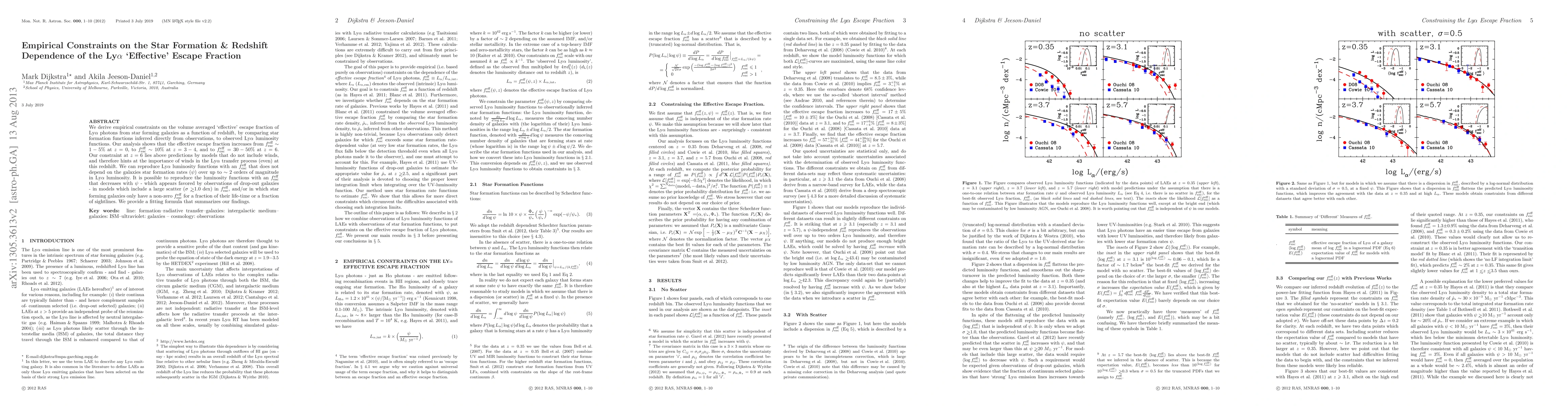 This paper derives empirical constraints on the effective escape fraction of Lyman Alpha photons from star-forming galaxies across different redshifts, finding that it increases significantly from ~1-5% at z=0 to 30-50% at z=6. The results suggest the importance of winds in the Lyman Alpha transfer process, even at high redshifts.
