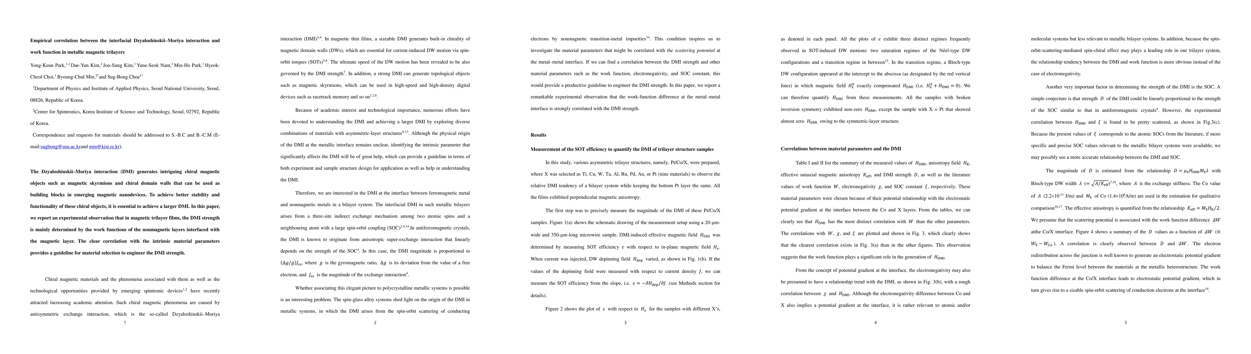 Researchers found a correlation between the Dzyaloshinskii Moriya interaction strength in magnetic trilayers and the work functions of nonmagnetic layers, enabling better material selection for stronger interactions.