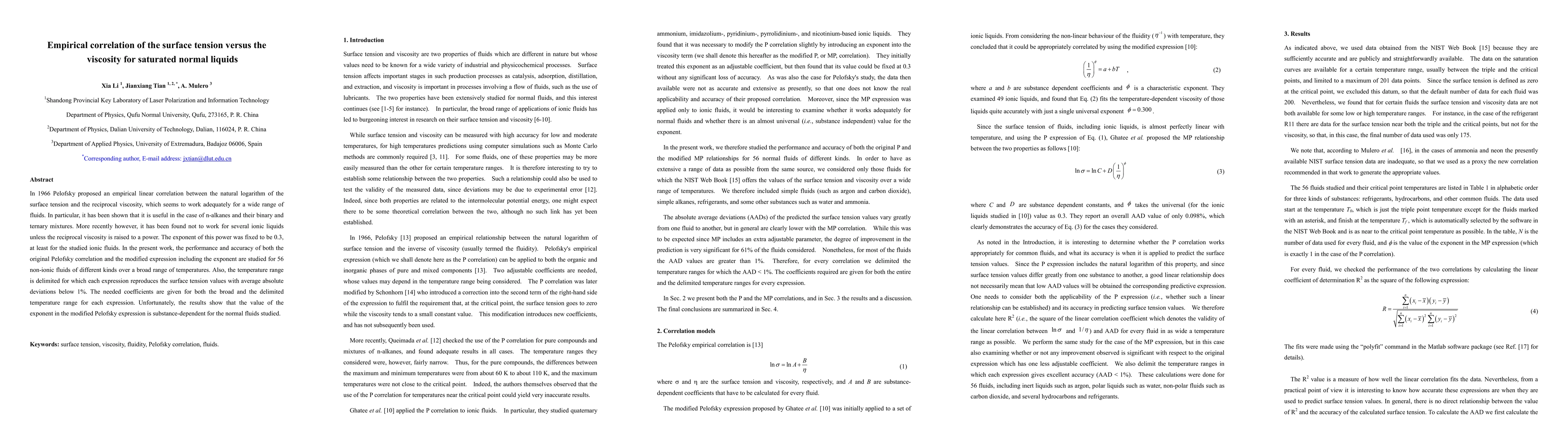 In 1966 Pelofsky proposed an empirical linear correlation between the natural logarithm of the surface tension and the reciprocal viscosity, which seems to work adequately for a wide range of fluids. In particular, it has been shown that it is useful in the case of n-alkanes and their binary and ternary mixtures. More recently however, it has been found not to work for several ionic liquids unless the reciprocal viscosity is raised to a power. The exponent of this power was fixed to be 0.3, at least for the studied ionic fluids. In the present work, the performance and accuracy of both the original Pelofsky correlation and the modified expression including the exponent are studied for 56 non-ionic fluids of different kinds over a broad range of temperatures. Also, the temperature range is delimited for which each expression reproduces the surface tension values with average absolute deviations below 1%. The needed coefficients are given for both the broad and the delimited temperature range for each expression. Unfortunately, the results show that the value of the exponent in the modified Pelofsky expression is substance-dependent for the normal fluids studied.