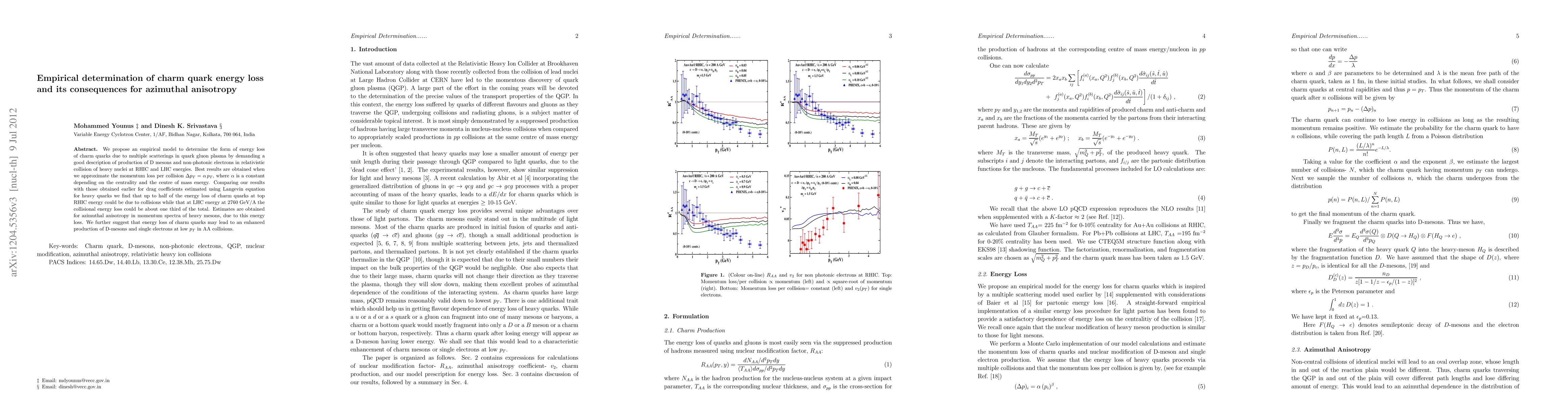 Researchers propose an empirical model to determine energy loss of charm quarks in quark gluon plasma, finding that up to half of their energy loss at top RHIC energy could be due to collisions, with collisional effects on momentum spectra.