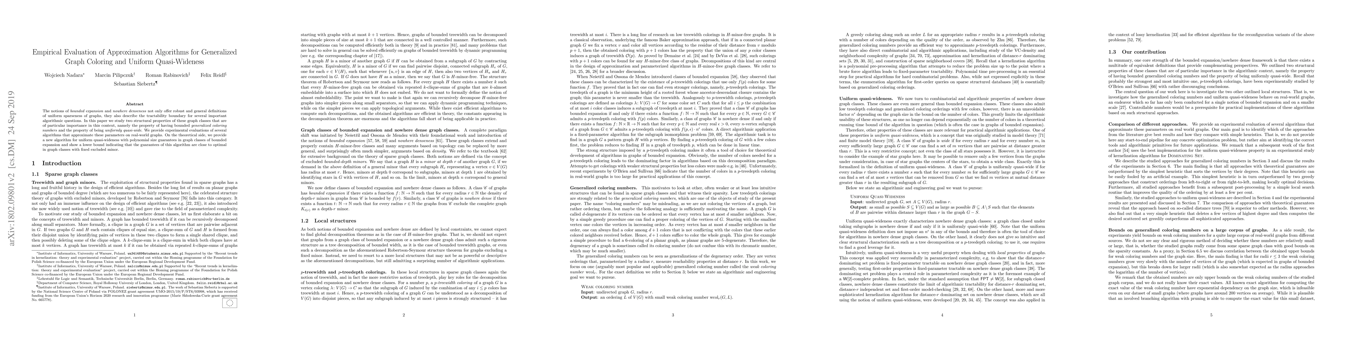 This paper evaluates approximation algorithms for generalized graph coloring and uniform quasi-wideness in graph classes with bounded expansion and nowhere denseness. It introduces a new algorithm for uniform quasi-wideness and demonstrates its optimality, while also providing experimental results on real-world graphs.