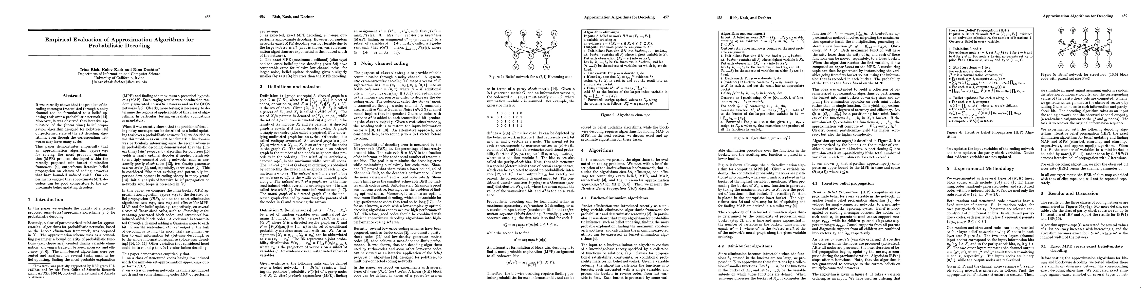 It was recently shown that the problem of decoding messages transmitted through a noisy channel can be formulated as a belief updating task over a probabilistic network [McEliece]. Moreover, it was observed that iterative application of the (linear time) Pearl's belief propagation algorithm designed for polytrees outperformed state of the art decoding algorithms, even though the corresponding networks may have many cycles. This paper demonstrates empirically that an approximation algorithm approx-mpe for solving the most probable explanation (MPE) problem, developed within the recently proposed mini-bucket elimination framework [Dechter96], outperforms iterative belief propagation on classes of coding networks that have bounded induced width. Our experiments suggest that approximate MPE decoders can be good competitors to the approximate belief updating decoders.