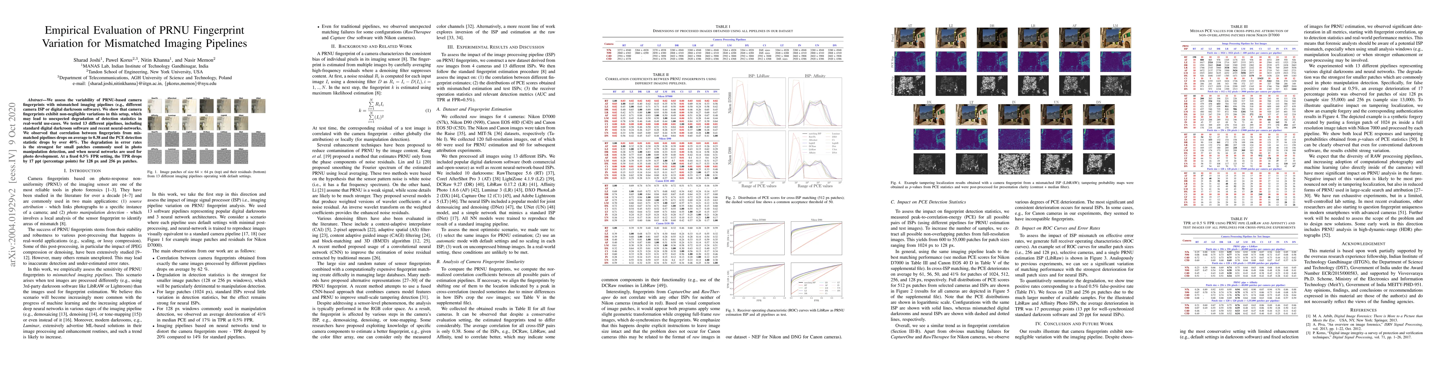 We assess the variability of PRNU-based camera fingerprints with mismatched imaging pipelines (e.g., different camera ISP or digital darkroom software). We show that camera fingerprints exhibit non-negligible variations in this setup, which may lead to unexpected degradation of detection statistics in real-world use-cases. We tested 13 different pipelines, including standard digital darkroom software and recent neural-networks. We observed that correlation between fingerprints from mismatched pipelines drops on average to 0.38 and the PCE detection statistic drops by over 40%. The degradation in error rates is the strongest for small patches commonly used in photo manipulation detection, and when neural networks are used for photo development. At a fixed 0.5% FPR setting, the TPR drops by 17 ppt (percentage points) for 128 px and 256 px patches.