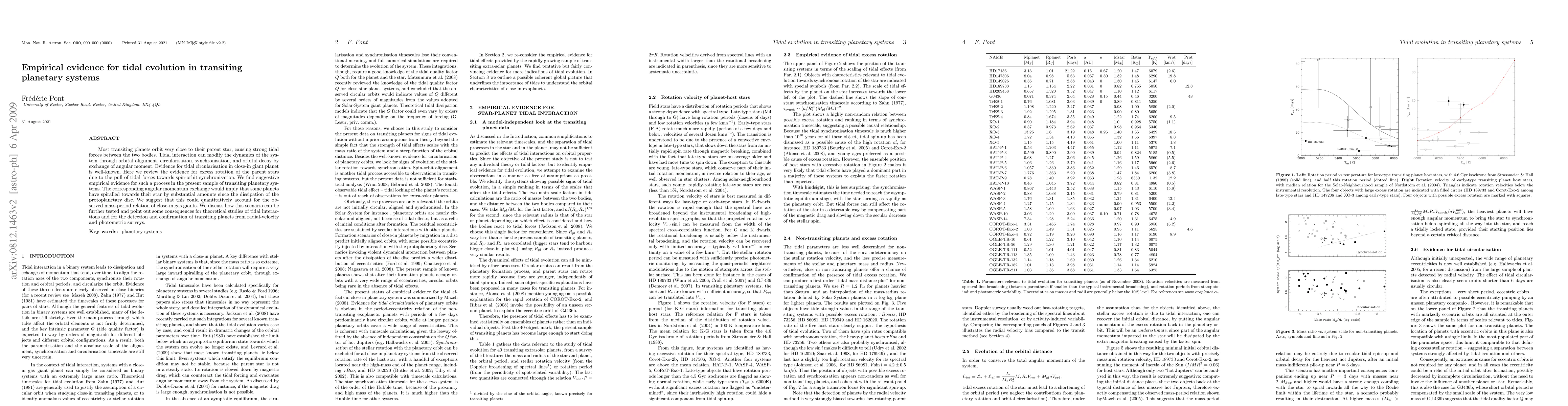 This paper reviews empirical evidence for tidal evolution in transiting planetary systems, finding suggestive proof of tidal forces causing parent stars to rotate faster due to spin-orbit synchronisation. The study suggests that tidal interactions may explain the observed mass-period relation of close-in gas giants and proposes further testing methods for this scenario.