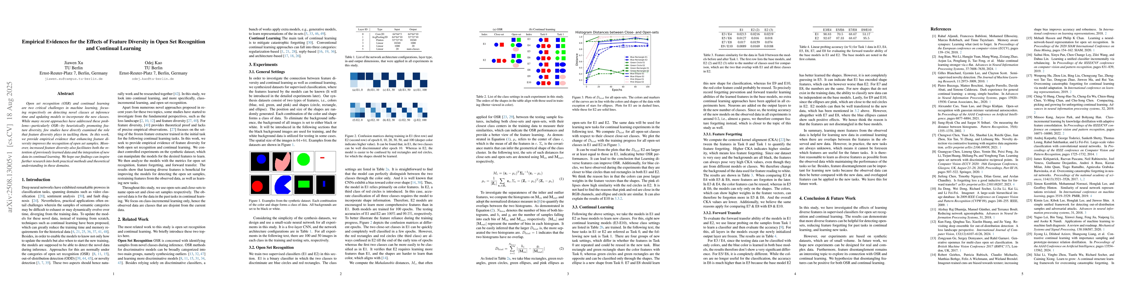Open set recognition (OSR) and continual learning are two critical challenges in machine learning, focusing respectively on detecting novel classes at inference time and updating models to incorporate the new classes. While many recent approaches have addressed these problems, particularly OSR, by heuristically promoting feature diversity, few studies have directly examined the role that feature diversity plays in tackling them. In this work, we provide empirical evidence that enhancing feature diversity improves the recognition of open set samples. Moreover, increased feature diversity also facilitates both the retention of previously learned data and the integration of new data in continual learning. We hope our findings can inspire further research into both practical methods and theoretical understanding in these domains.