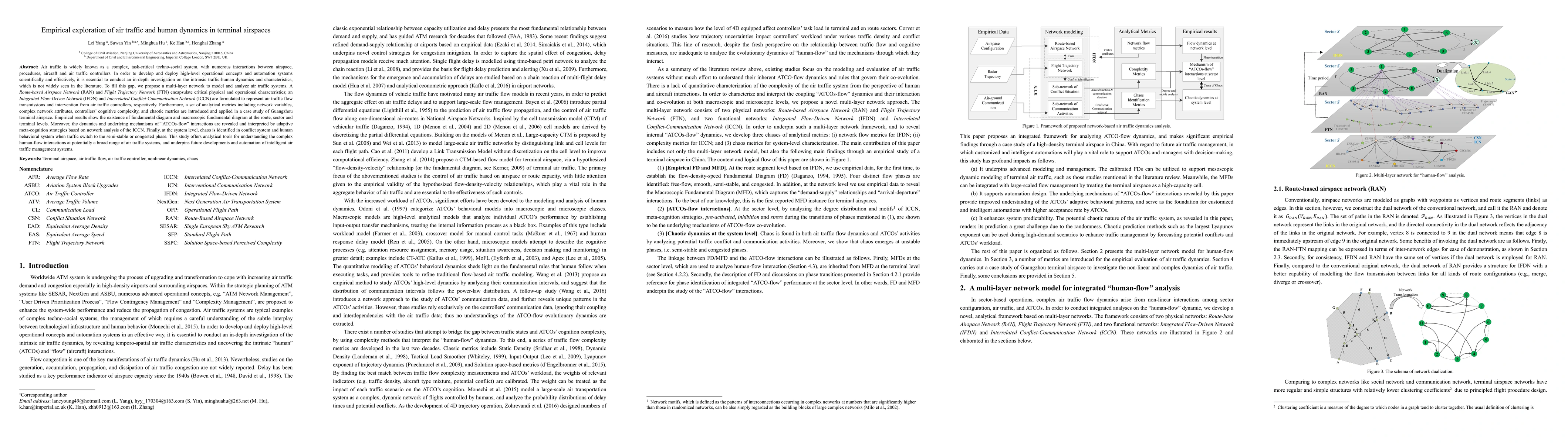 This study uses a multi-layer network to model air traffic systems, revealing fundamental diagrams, macroscopic fundamental diagrams, and chaos in conflict systems and human behavior during congested phases.