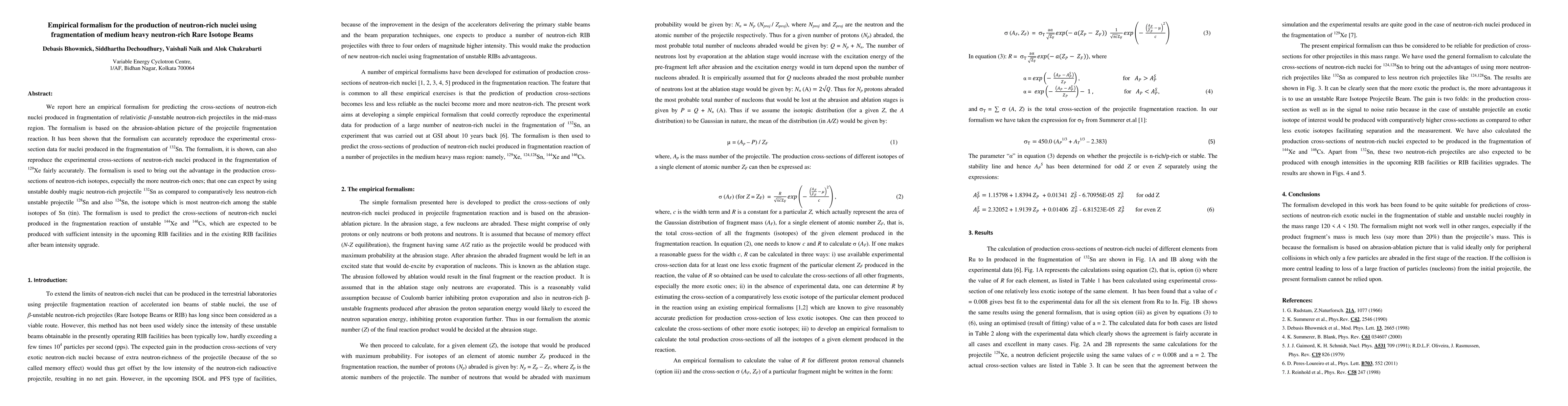 This paper presents an empirical formalism for predicting cross-sections of neutron-rich nuclei from the fragmentation of relativistic neutron-rich projectiles, validated against experimental data for 132Sn and 129Xe. The formalism highlights the enhanced production of neutron-rich isotopes using unstable doubly magic 132Sn compared to less neutron-rich unstable and stable isotopes.