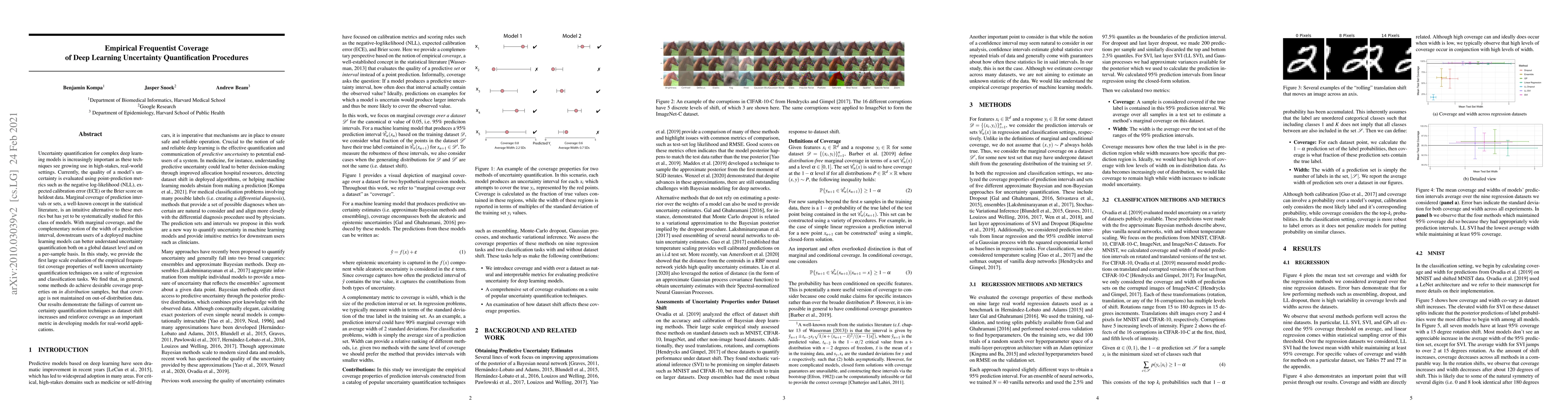 This study examines the empirical frequentist coverage of uncertainty quantification methods in deep learning, finding that while some techniques perform well on in-distribution data, they fail to maintain coverage under out-of-distribution shifts, highlighting the need for improved methods for real-world applications.