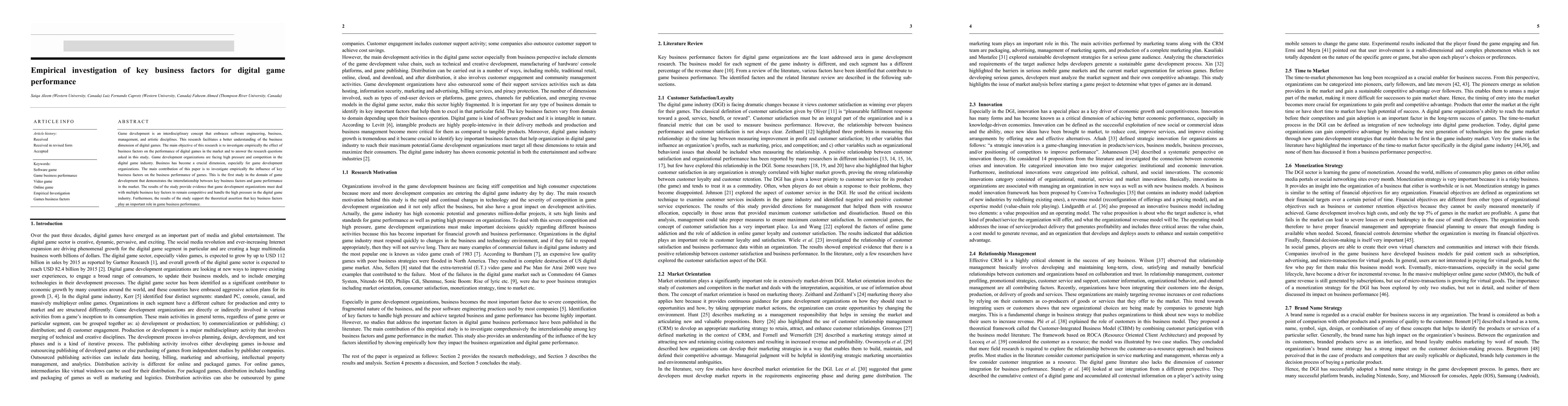 This study contributes to the understanding of business factors in digital game development by providing empirical evidence for their effectiveness.