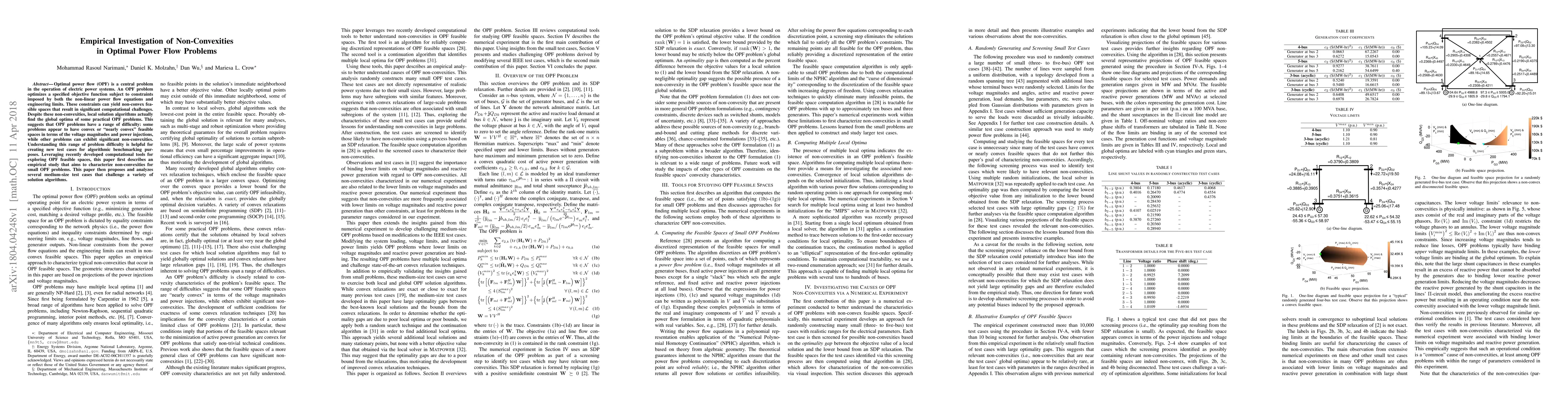 This paper investigates the non-convexities in optimal power flow (OPF) problems, highlighting their computational challenges and the varying difficulty levels. It employs empirical methods to characterize these non-convexities in small OPF problems and proposes medium-size test cases to benchmark solution algorithms.