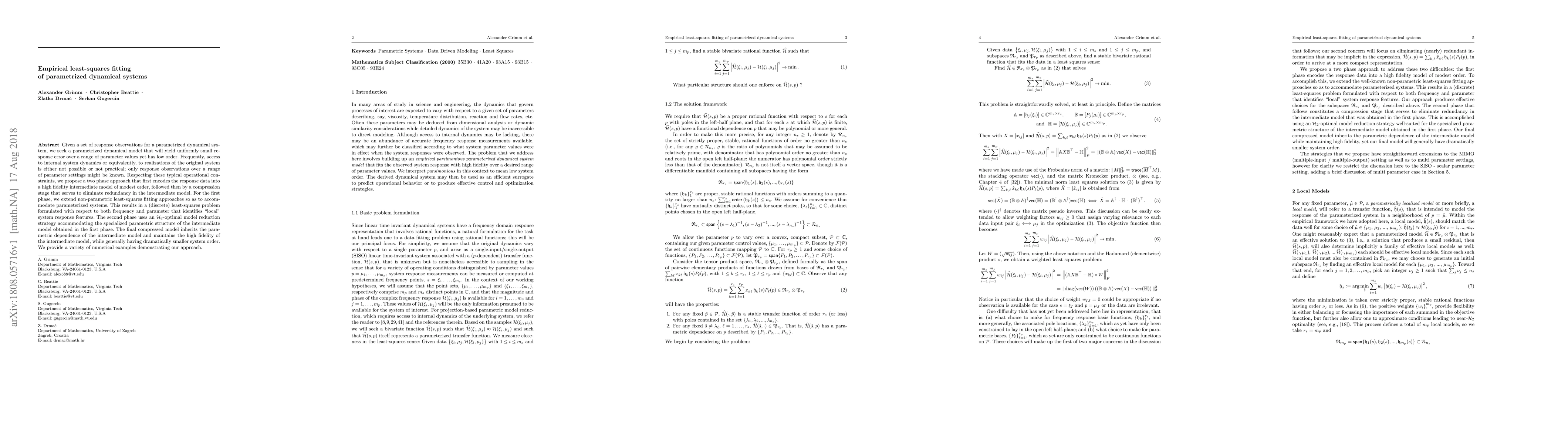 This paper proposes a two-phase approach for fitting parametrized dynamical systems using response observations. It first encodes the data into a high-fidelity intermediate model, then employs $\mathbf{\mathcal{H}}_2$-optimal model reduction to eliminate redundancy, resulting in a low-order model that maintains high fidelity and parametric dependence.
