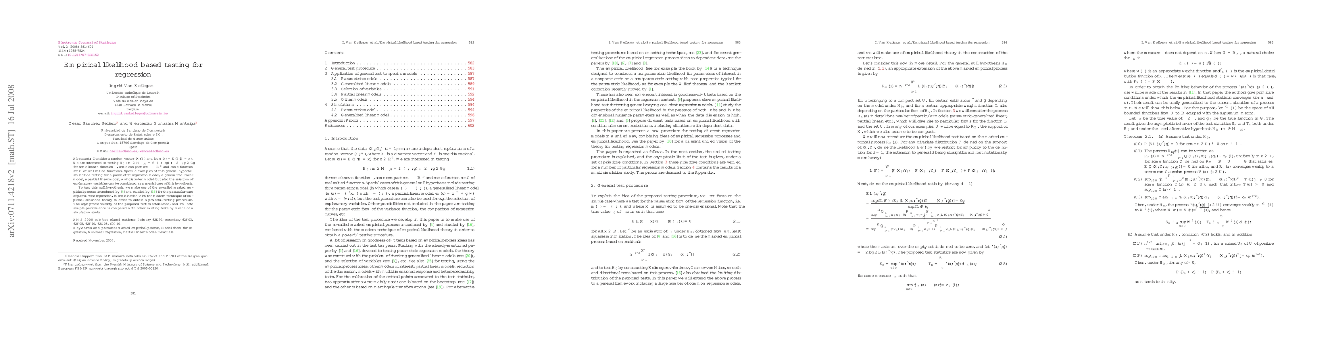 This paper proposes a new testing method for regression models using empirical likelihood theory, which combines a marked empirical process with modern techniques to create a powerful test. The method is shown to be asymptotically valid and compared to existing tests through a simulation study.