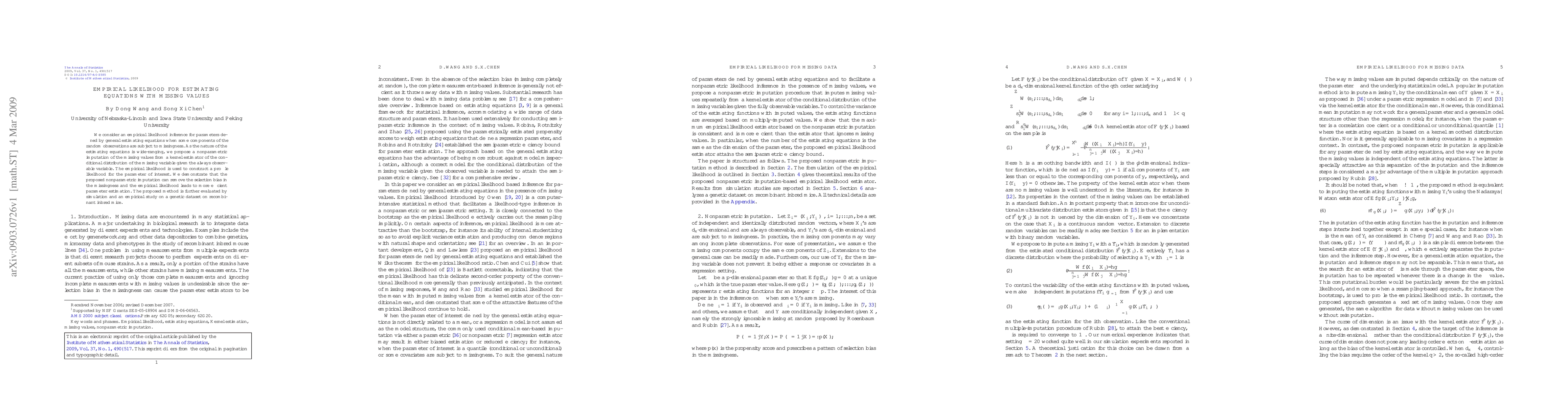 This paper proposes an empirical likelihood method for estimating parameters defined by general estimating equations in the presence of missing data. It uses nonparametric imputation via kernel estimators to handle missing values, demonstrating improved efficiency and reduced selection bias in parameter estimation through simulations and an empirical study on a genetic dataset.