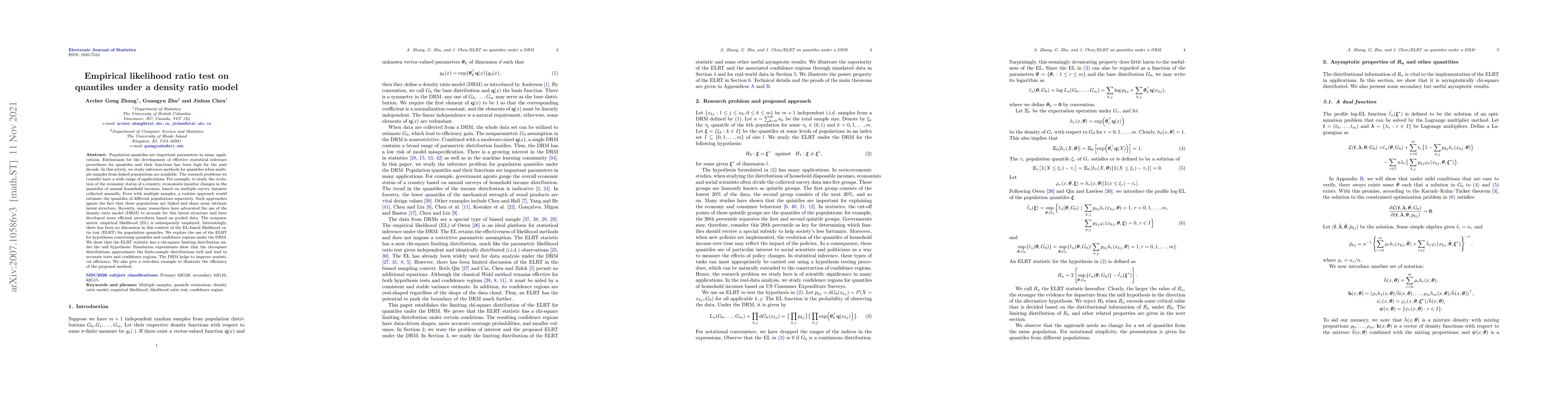 This paper develops an empirical likelihood ratio test (ELRT) for population quantiles under the density ratio model (DRM), which accounts for latent structures linking multiple samples. The proposed method improves statistical efficiency and provides accurate tests and confidence regions, as demonstrated through simulations and a real-data example.