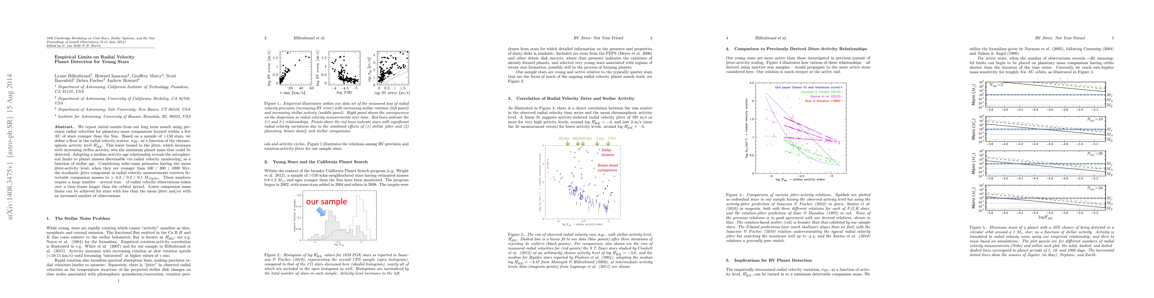 We report initial results from our long term search using precision radial velocities for planetary-mass companions located within a few AU of stars younger than the Sun. Based on a sample of >150 stars, we define a floor in the radial velocity scatter, sigma_RV, as a function of the chromospheric activity level R'_{HK}. This lower bound to the jitter, which increases with increasing stellar activity, sets the minimum planet mass that could be detected. Adopting a median activity-age relationship reveals the astrophysical limits to planet masses discernable via radial velocity monitoring, as a function of stellar age. Considering solar-mass primaries having the mean jitter-activity level, when they are younger than 100 / 300 / 1000 Myr, the stochastic jitter component in radial velocity measurements restricts detectable companion masses to > 0.3 / 0.2 / 0.1 M_Jupiter. These numbers require a large number -- several tens -- of radial velocity observations taken over a time frame longer than the orbital period. Lower companion mass limits can be achieved for stars with less than the mean jitter and/or with an increased number of observations.