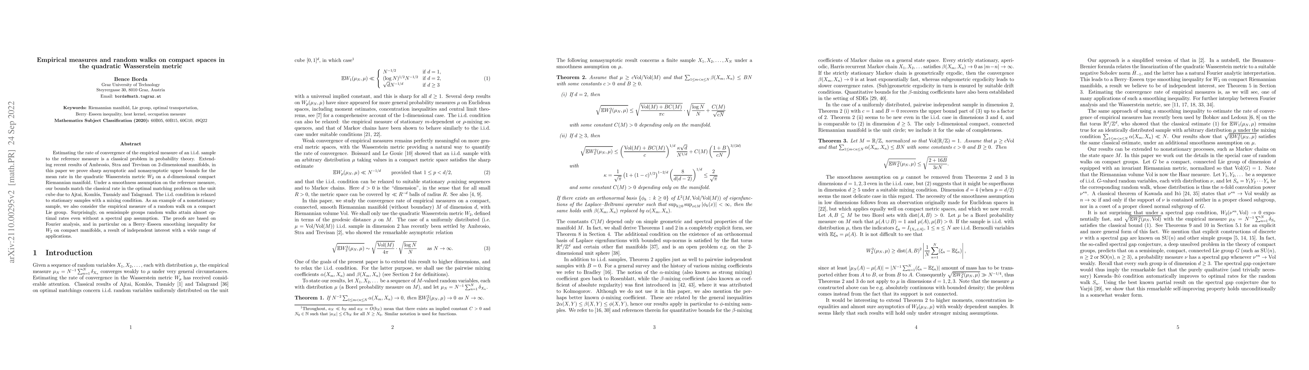 This paper establishes sharp bounds for the convergence rate of empirical measures to reference measures in the quadratic Wasserstein metric on compact Riemannian manifolds, extending previous results to nonstationary samples with mixing conditions. The study also explores random walks on compact Lie groups, revealing near-optimal convergence rates on semisimple groups without spectral gap assumptions.