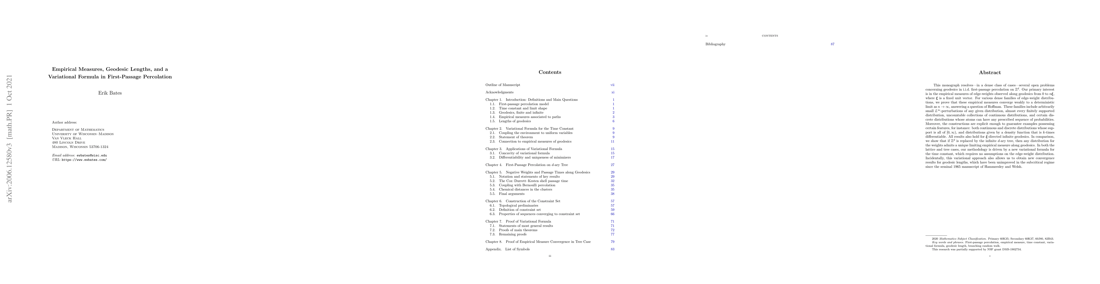 This monograph resolves - in a dense class of cases - several open problems concerning geodesics in i.i.d. first-passage percolation on $\mathbb{Z}^d$. Our primary interest is in the empirical measures of edge-weights observed along geodesics from $0$ to $n\xi$, where $\xi$ is a fixed unit vector. For various dense families of edge-weight distributions, we prove that these empirical measures converge weakly to a deterministic limit as $n\to\infty$, answering a question of Hoffman. These families include arbitrarily small $L^\infty$-perturbations of any given distribution, almost every finitely supported distribution, uncountable collections of continuous distributions, and certain discrete distributions whose atoms can have any prescribed sequence of probabilities. Moreover, the constructions are explicit enough to guarantee examples possessing certain features, for instance: both continuous and discrete distributions whose support is all of $[0,\infty)$, and distributions given by a density function that is $k$-times differentiable. All results also hold for $\xi$-directed infinite geodesics. In comparison, we show that if $\mathbb{Z}^d$ is replaced by the infinite $d$-ary tree, then any distribution for the weights admits a unique limiting empirical measure along geodesics. In both the lattice and tree cases, our methodology is driven by a new variational formula for the time constant, which requires no assumptions on the edge-weight distribution. Incidentally, this variational approach also allows us to obtain new convergence results for geodesic lengths, which have been unimproved in the subcritical regime since the seminal 1965 manuscript of Hammersley and Welsh.