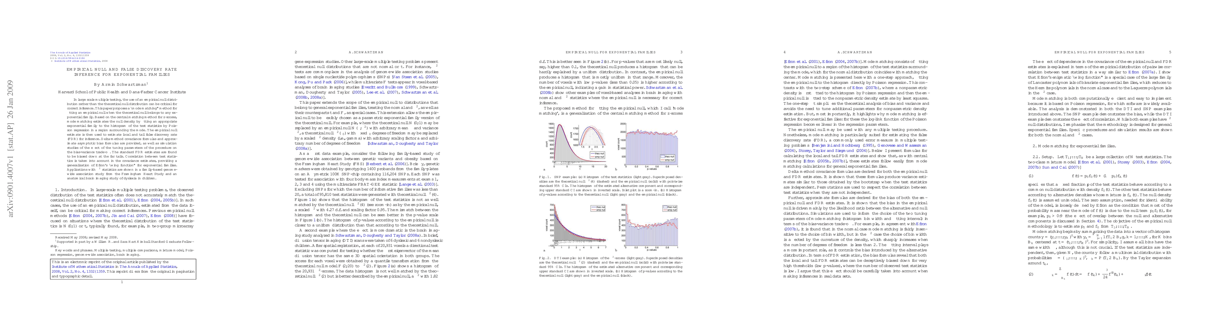 This paper proposes a "mode matching" method for constructing an empirical null distribution in large scale multiple testing, particularly for data from exponential families. It uses Poisson regression to fit an appropriate exponential family to the histogram of test statistics, enabling accurate local and tail false discovery rate (FDR) estimation, and demonstrates its application in genetic and brain imaging studies.
