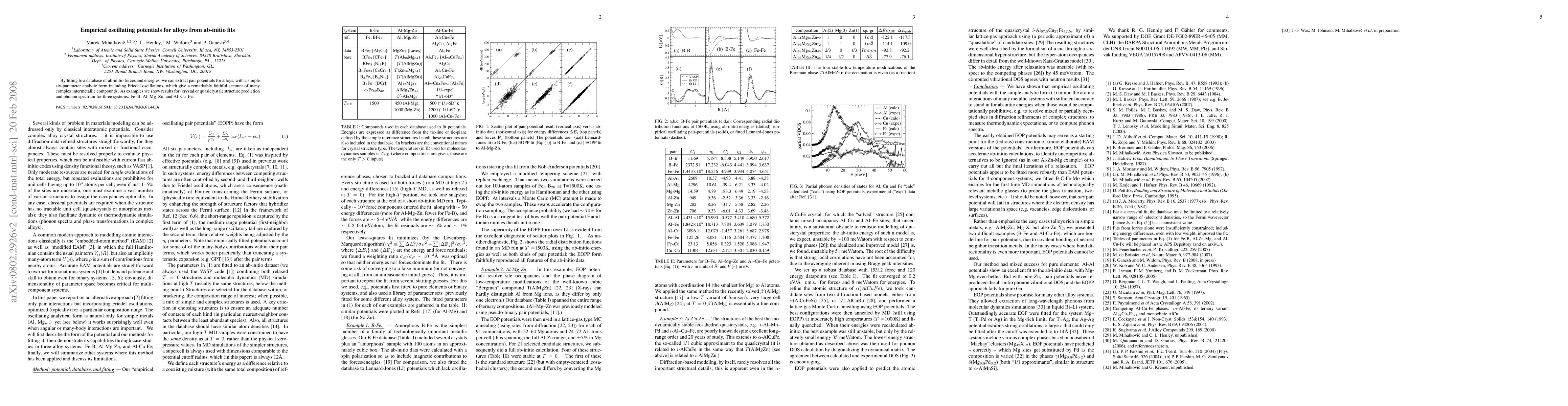 By fitting to a database of ab-initio forces and energies, we can extract pair potentials for alloys, with a simple six-parameter analytic form including Friedel oscillations, which give a remarkably faithful account of many complex intermetallic compounds. As examples we show results for (crystal or quasicrystal) structure prediction and phonon spectrum for three systems: Fe--B, Al--Mg--Zn, and Al--Cu--Fe.