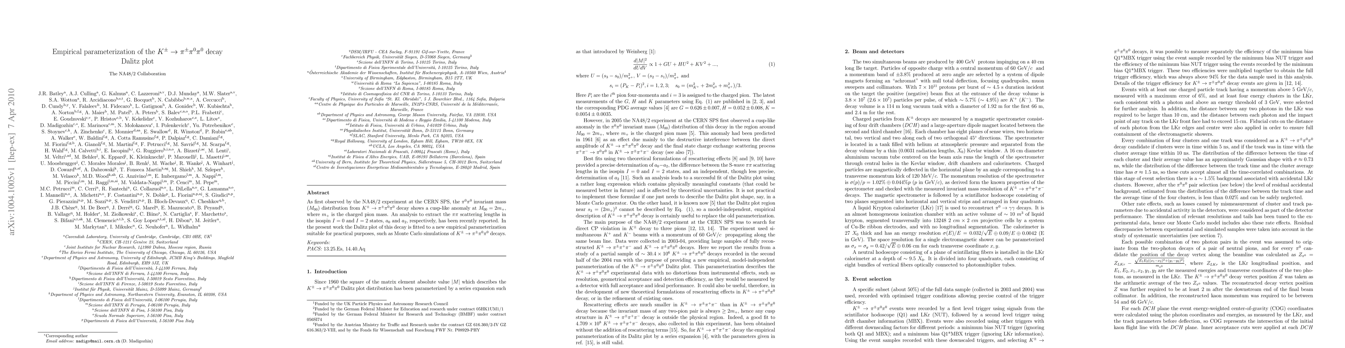 As first observed by the NA48/2 experiment at the CERN SPS, the $\p0p0$ invariant mass (M00) distribution from $\kcnn$ decay shows a cusp-like anomaly at M00=2m+, where m+ is the charged pion mass. An analysis to extract the pi pi scattering lengths in the isospin I=0 and I=2 states, a0 and a2, respectively, has been recently reported. In the present work the Dalitz plot of this decay is fitted to a new empirical parameterization suitable for practical purposes, such as Monte Carlo simulations of K+- -> pi+- pi0 pi0 decays.