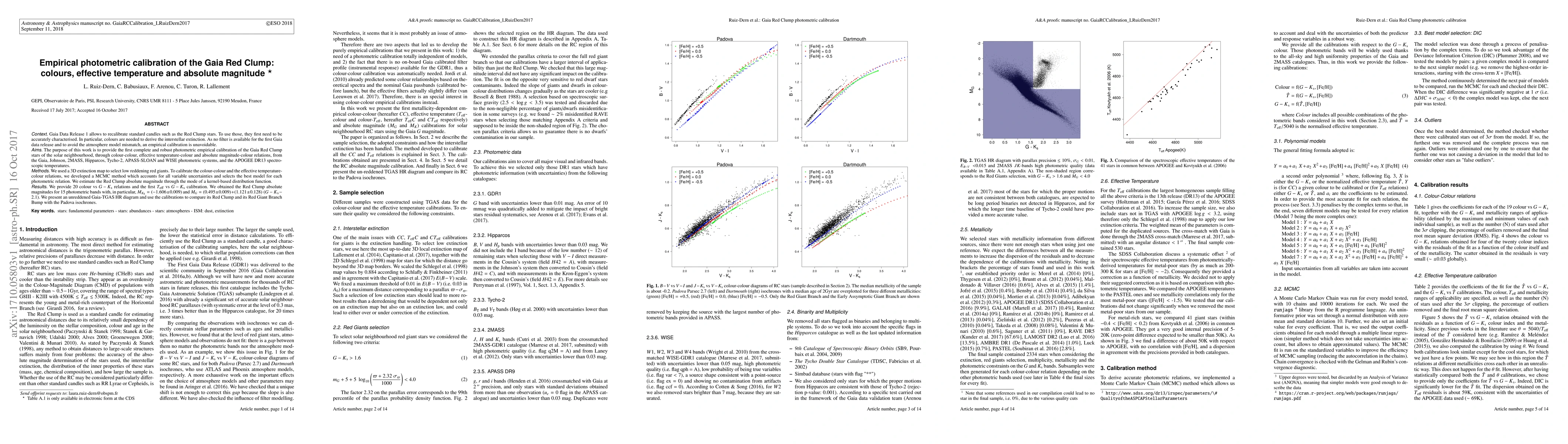 This paper provides an empirical photometric calibration of Gaia Red Clump stars using multiple photometric systems and spectroscopic temperatures. The authors derive 20 colour-colour relations, effective temperature-colour calibrations, and Red Clump absolute magnitudes, finding M_Ks = -1.606 +/- 0.009 and M_G = (0.495 +/- 0.009) + (1.121 +/- 0.128)(G-Ks-2.1).