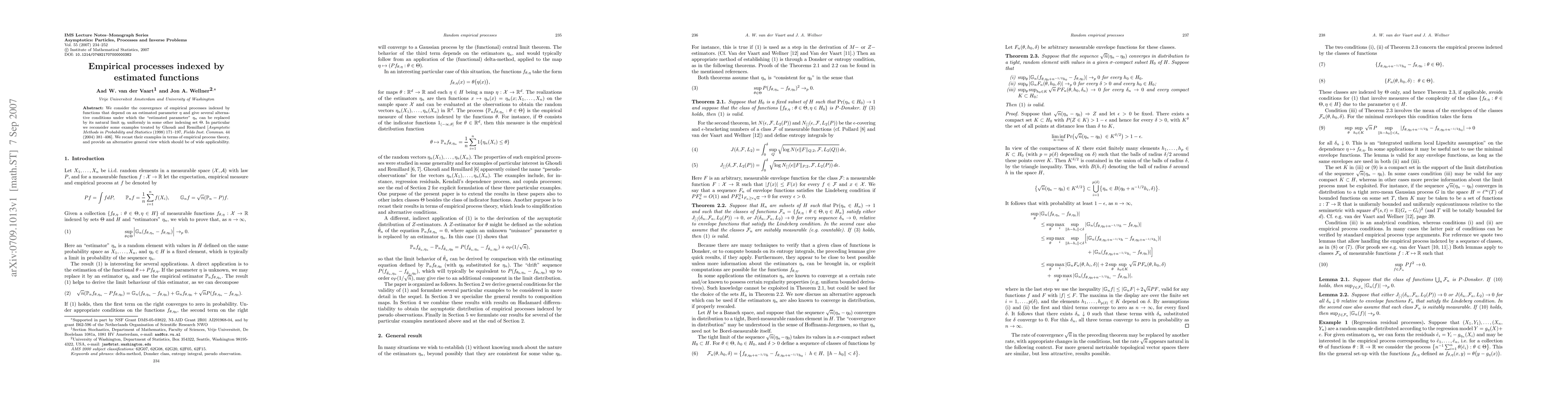 This paper explores the convergence of empirical processes indexed by functions dependent on an estimated parameter, providing conditions under which the estimated parameter can be replaced by its true value uniformly. It reinterprets previous examples in the context of empirical process theory to offer a more general perspective.