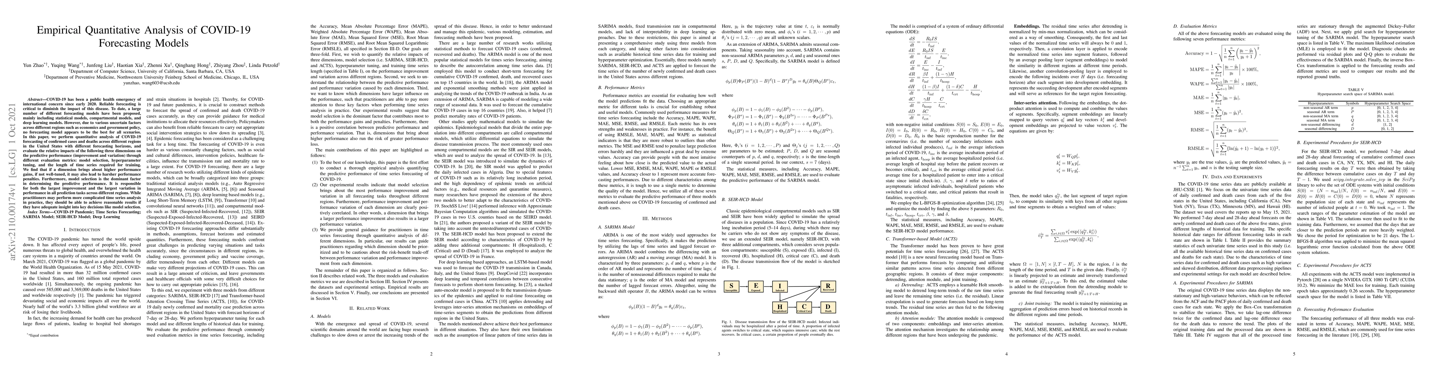 COVID-19 has been a public health emergency of international concern since early 2020. Reliable forecasting is critical to diminish the impact of this disease. To date, a large number of different forecasting models have been proposed, mainly including statistical models, compartmental models, and deep learning models. However, due to various uncertain factors across different regions such as economics and government policy, no forecasting model appears to be the best for all scenarios. In this paper, we perform quantitative analysis of COVID-19 forecasting of confirmed cases and deaths across different regions in the United States with different forecasting horizons, and evaluate the relative impacts of the following three dimensions on the predictive performance (improvement and variation) through different evaluation metrics: model selection, hyperparameter tuning, and the length of time series required for training. We find that if a dimension brings about higher performance gains, if not well-tuned, it may also lead to harsher performance penalties. Furthermore, model selection is the dominant factor in determining the predictive performance. It is responsible for both the largest improvement and the largest variation in performance in all prediction tasks across different regions. While practitioners may perform more complicated time series analysis in practice, they should be able to achieve reasonable results if they have adequate insight into key decisions like model selection.