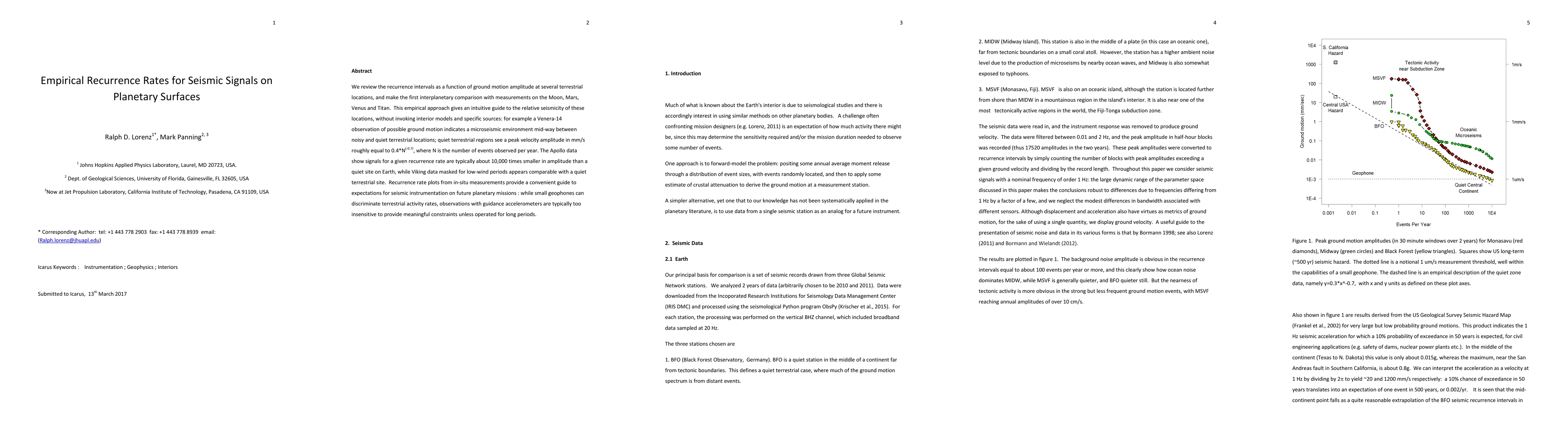 We review the recurrence intervals as a function of ground motion amplitude at several terrestrial locations, and make the first interplanetary comparison with measurements on the Moon, Mars, Venus and Titan. This empirical approach gives an intuitive guide to the relative seismicity of these locations, without invoking interior models and specific sources: for example a Venera-14 observation of possible ground motion indicates a microseismic environment mid-way between noisy and quiet terrestrial locations; quiet terrestrial regions see a peak velocity amplitude in mm/s roughly equal to 0.4*N(-0.7), where N is the number of events observed per year. The Apollo data show signals for a given recurrence rate are typically about 10,000 times smaller in amplitude than a quiet site on Earth, while Viking data masked for low-wind periods appears comparable with a quiet terrestrial site. Recurrence rate plots from in-situ measurements provide a convenient guide to expectations for seismic instrumentation on future planetary missions : while small geophones can discriminate terrestrial activity rates, observations with guidance accelerometers are typically too insensitive to provide meaningful constraints unless operated for long periods.