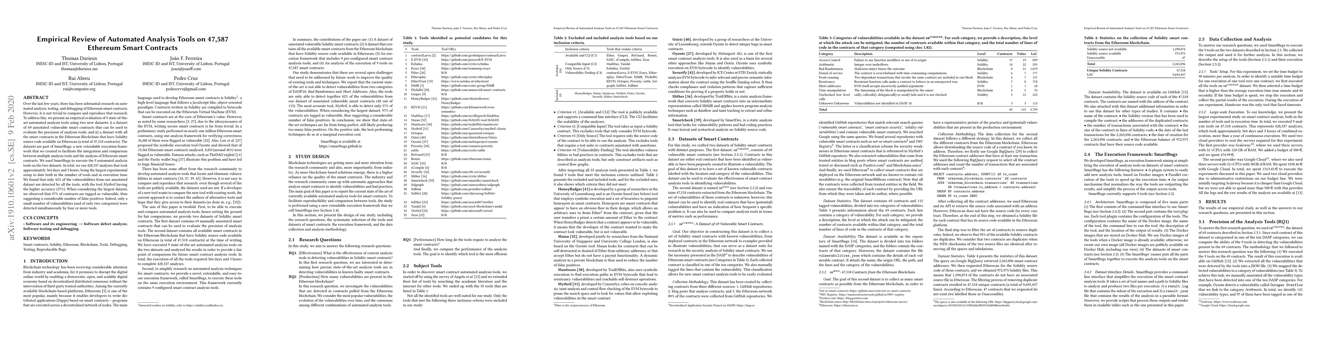 A comprehensive evaluation of 47,587 Ethereum smart contracts was conducted to assess the current state of automated analysis tools.