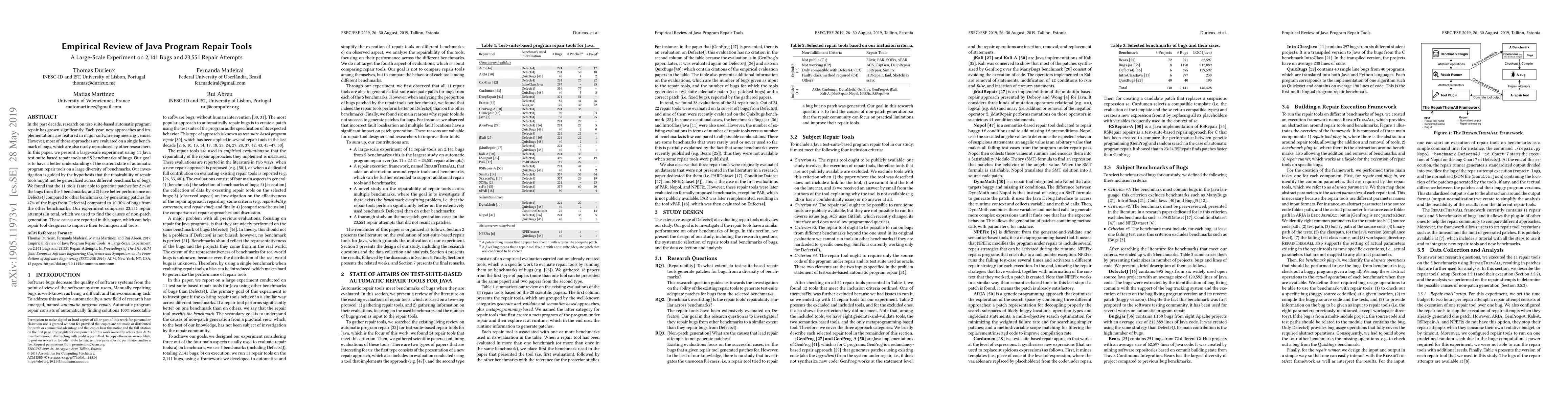 This paper conducts a large-scale experiment evaluating 11 Java program repair tools across 5 bug benchmarks, revealing that these tools generate patches for 21% of the bugs overall, with significantly better performance on Defects4J (47% success) compared to other benchmarks (10-30% success). The study provides insights into non-patch generation causes to guide future tool improvements.