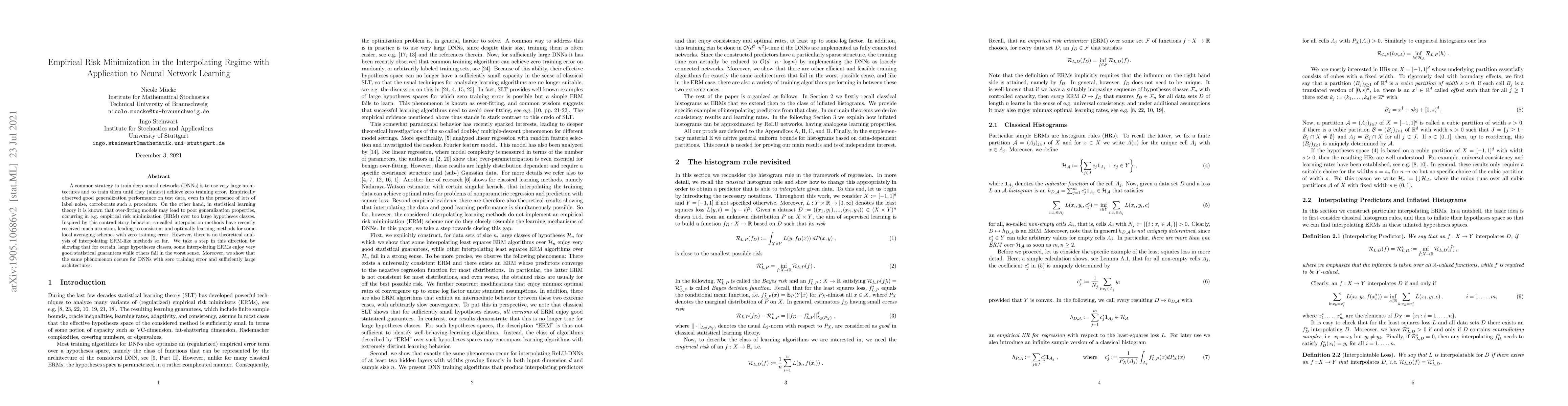 A common strategy to train deep neural networks (DNNs) is to use very large architectures and to train them until they (almost) achieve zero training error. Empirically observed good generalization performance on test data, even in the presence of lots of label noise, corroborate such a procedure. On the other hand, in statistical learning theory it is known that over-fitting models may lead to poor generalization properties, occurring in e.g. empirical risk minimization (ERM) over too large hypotheses classes. Inspired by this contradictory behavior, so-called interpolation methods have recently received much attention, leading to consistent and optimally learning methods for some local averaging schemes with zero training error. However, there is no theoretical analysis of interpolating ERM-like methods so far. We take a step in this direction by showing that for certain, large hypotheses classes, some interpolating ERMs enjoy very good statistical guarantees while others fail in the worst sense. Moreover, we show that the same phenomenon occurs for DNNs with zero training error and sufficiently large architectures.