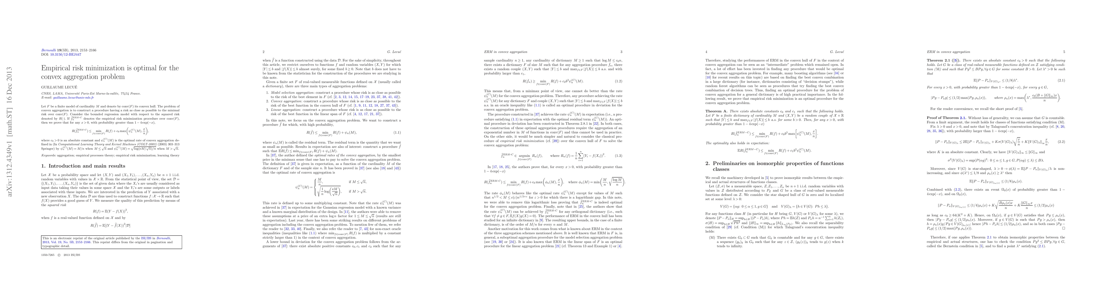 This paper proves that the empirical risk minimization (ERM) procedure is optimal for the convex aggregation problem, showing that with high probability, its risk is close to the minimal risk over the convex hull of a finite model set. The result is bounded by an additive term dependent on the model size and sample size.