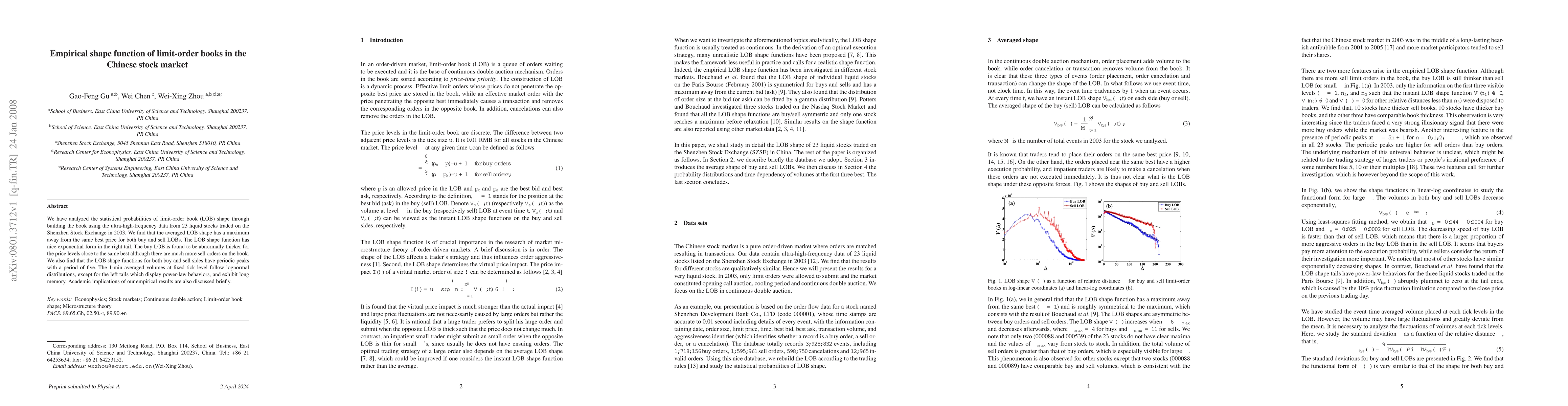 This study analyzes limit-order book shapes in the Chinese stock market, finding that buy and sell sides have different shape functions with periodic peaks and abnormally thick books near best prices.