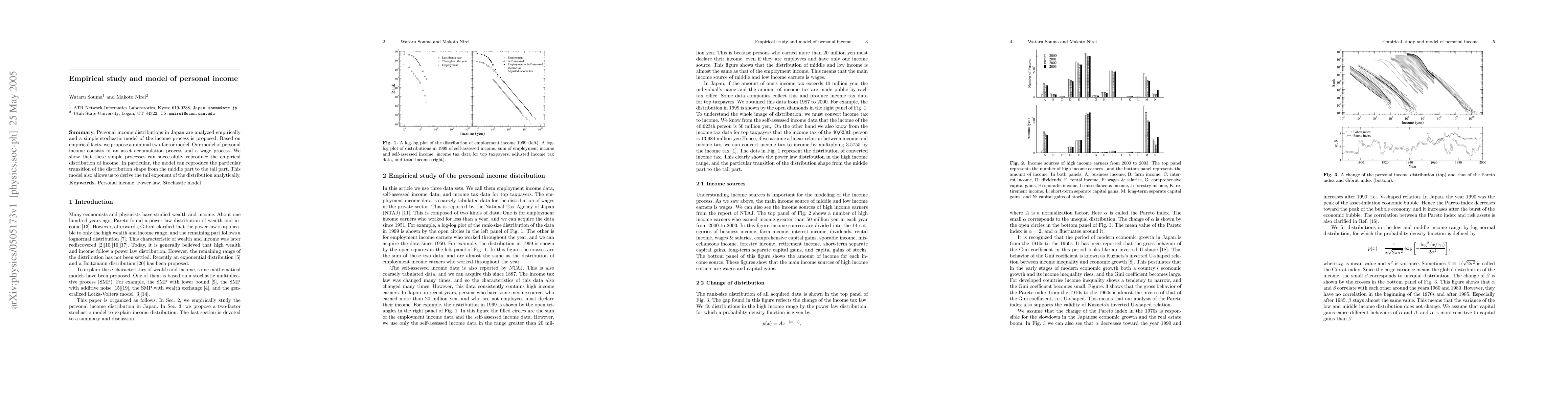 Personal income distributions in Japan are analyzed empirically and a simple stochastic model of the income process is proposed. Based on empirical facts, we propose a minimal two-factor model. Our model of personal income consists of an asset accumulation process and a wage process. We show that these simple processes can successfully reproduce the empirical distribution of income. In particular, the model can reproduce the particular transition of the distribution shape from the middle part to the tail part. This model also allows us to derive the tail exponent of the distribution analytically.
