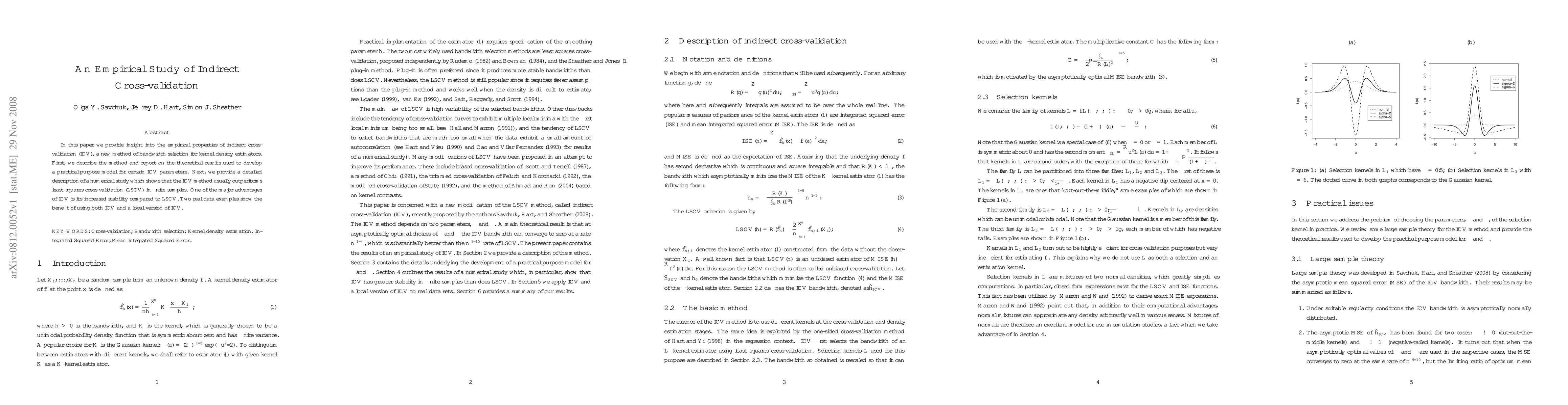 A study finds that indirect cross-validation (ICV) outperforms least squares cross-validation in finite samples due to its increased stability, making it a reliable method for kernel density estimators.