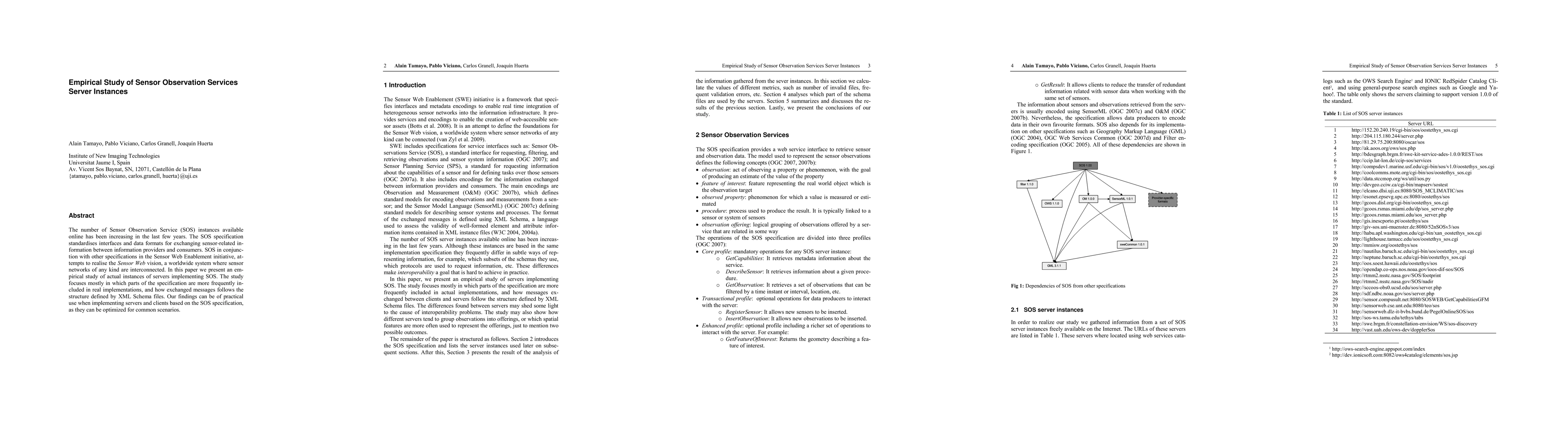 The number of Sensor Observation Service (SOS) instances available online has been increasing in the last few years. The SOS specification standardises interfaces and data formats for exchanging sensor-related in-formation between information providers and consumers. SOS in conjunction with other specifications in the Sensor Web Enablement initiative, at-tempts to realise the Sensor Web vision, a worldwide system where sensor networks of any kind are interconnected. In this paper we present an empirical study of actual instances of servers implementing SOS. The study focuses mostly in which parts of the specification are more frequently included in real implementations, and how exchanged messages follows the structure defined by XML Schema files. Our findings can be of practical use when implementing servers and clients based on the SOS specification, as they can be optimized for common scenarios.