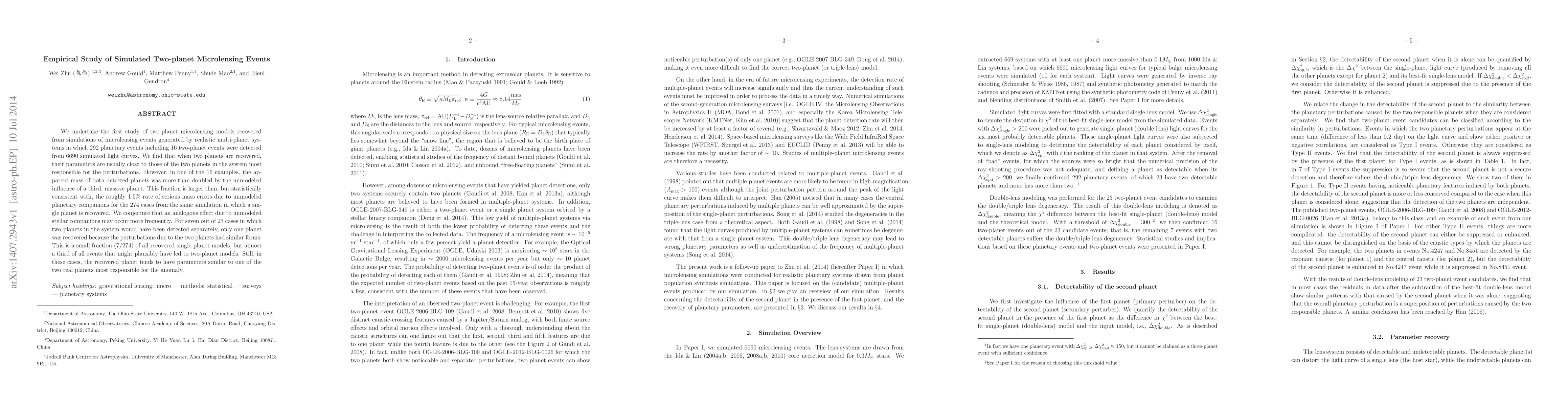 We undertake the first study of two-planet microlensing models recovered from simulations of microlensing events generated by realistic multi-planet systems in which 292 planetary events including 16 two-planet events were detected from 6690 simulated light curves. We find that when two planets are recovered, their parameters are usually close to those of the two planets in the system most responsible for the perturbations. However, in one of the 16 examples, the apparent mass of both detected planets was more than doubled by the unmodeled influence of a third, massive planet. This fraction is larger than, but statistically consistent with, the roughly 1.5% rate of serious mass errors due to unmodeled planetary companions for the 274 cases from the same simulation in which a single planet is recovered. We conjecture that an analogous effect due to unmodeled stellar companions may occur more frequently. For seven out of 23 cases in which two planets in the system would have been detected separately, only one planet was recovered because the perturbations due to the two planets had similar forms. This is a small fraction (7/274) of all recovered single-planet models, but almost a third of all events that might plausibly have led to two-planet models. Still, in these cases, the recovered planet tends to have parameters similar to one of the two real planets most responsible for the anomaly.