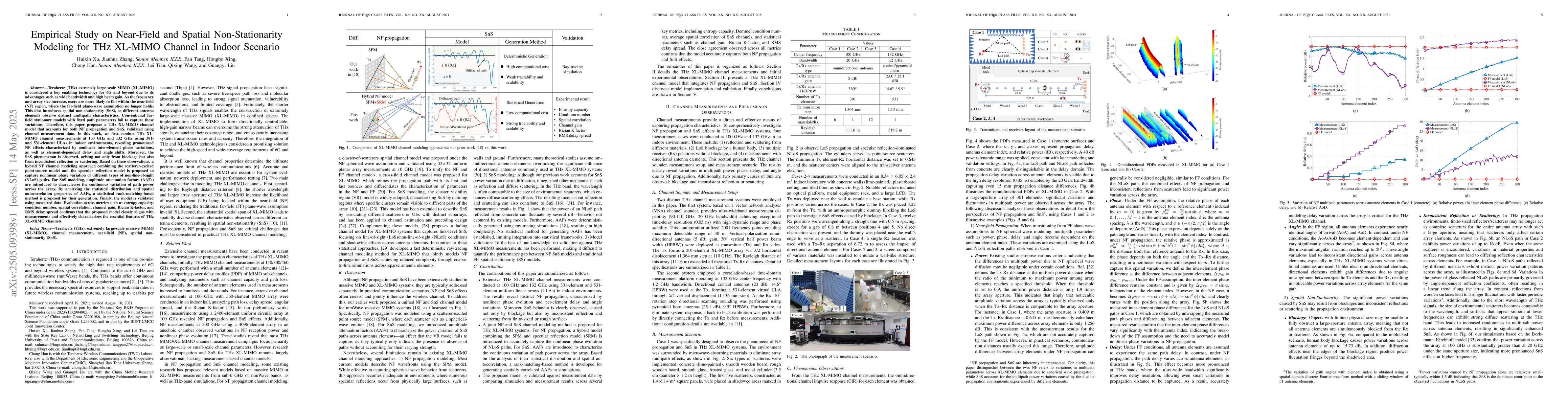 The research methodology involved conducting THz XL-MIMO channel measurements at 100 GHz and 132 GHz using 301- and 531-element ULAs in indoor environments to observe near-field effects and spatial non-stationarity.