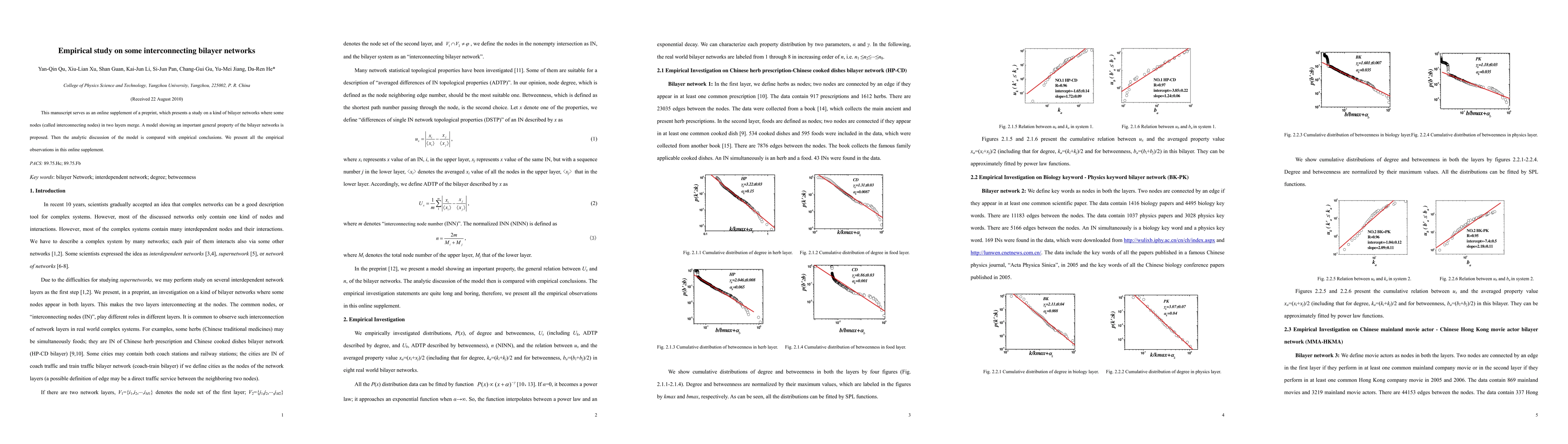This manuscript serves as an online supplement of a preprint, which presents a study on a kind of bilayer networks where some nodes (called interconnecting nodes) in two layers merge. A model showing an important general property of the bilayer networks is proposed. Then the analytic discussion of the model is compared with empirical conclusions. We present all the empirical observations in this online supplement.