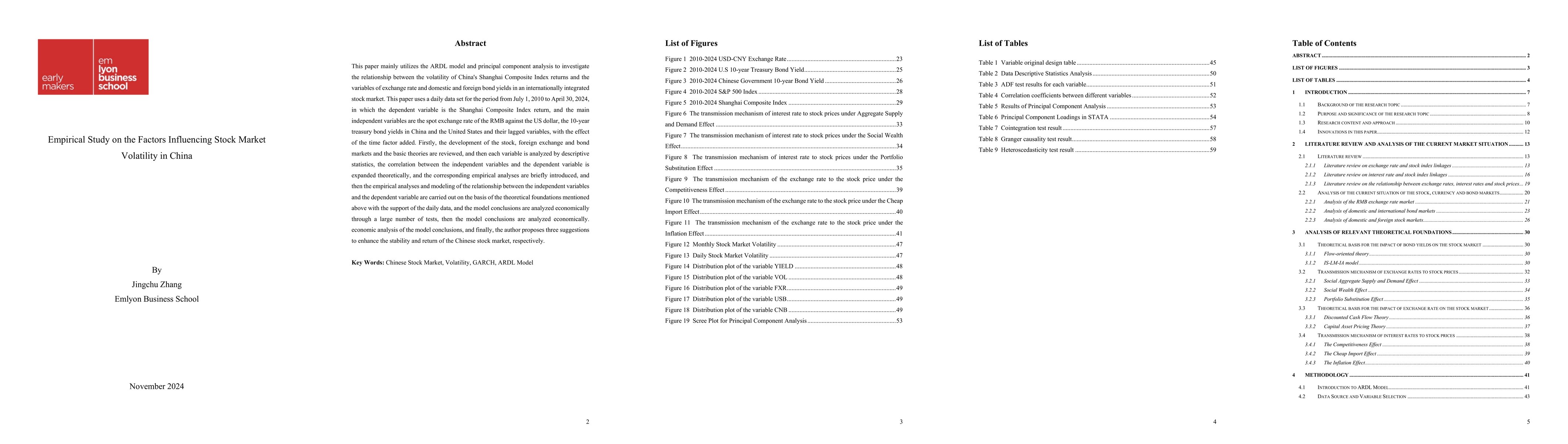This paper uses ARDL and PCA to study factors influencing volatility in China's Shanghai Composite Index, focusing on RMB exchange rate, and domestic and foreign bond yields from 2010 to 2024. The study concludes with three recommendations to boost stock market stability and returns.
