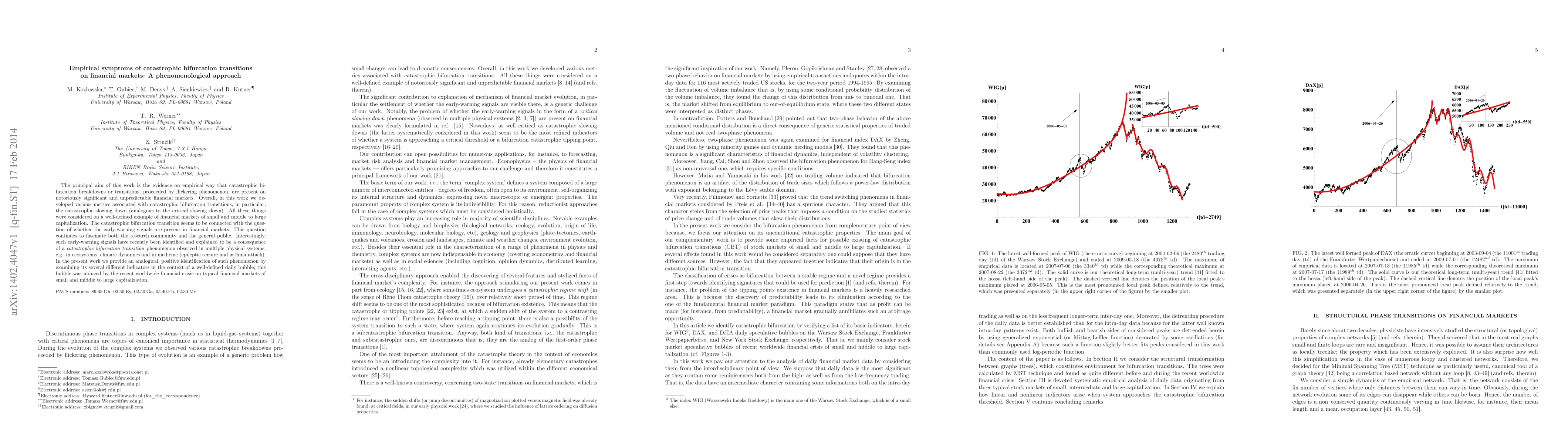 This paper investigates empirical evidence of catastrophic bifurcation transitions in financial markets, using metrics like catastrophic slowing down. It identifies early-warning signals linked to these transitions, analogous to those found in physical systems, and applies these findings to financial markets affected by the recent global financial crisis.