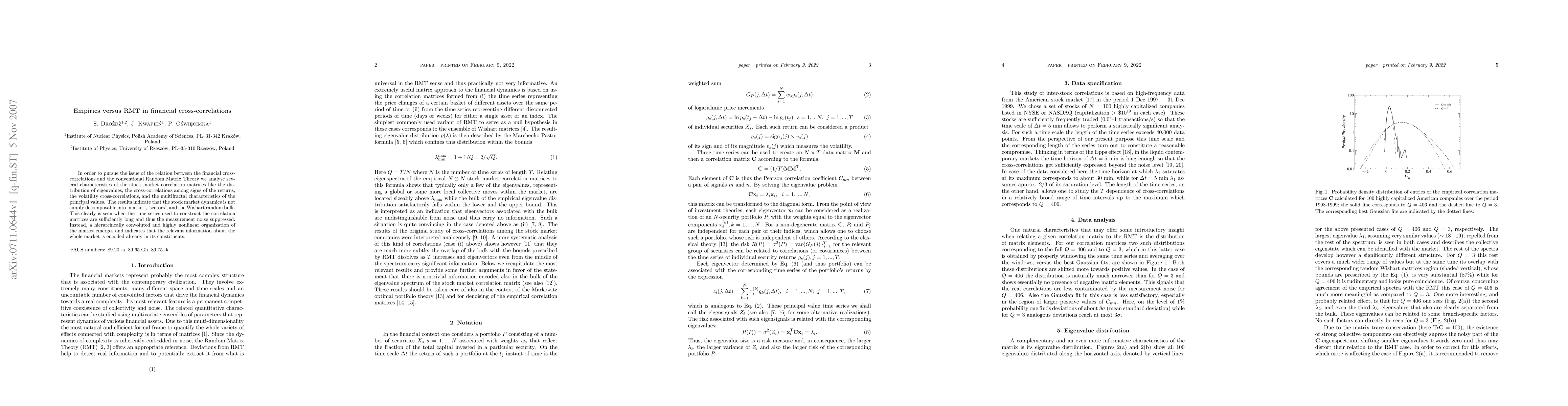In order to pursue the issue of the relation between the financial cross-correlations and the conventional Random Matrix Theory we analyse several characteristics of the stock market correlation matrices like the distribution of eigenvalues, the cross-correlations among signs of the returns, the volatility cross-correlations, and the multifractal characteristics of the principal values. The results indicate that the stock market dynamics is not simply decomposable into 'market', 'sectors', and the Wishart random bulk. This clearly is seen when the time series used to construct the correlation matrices are sufficiently long and thus the measurement noise suppressed. Instead, a hierarchically convoluted and highly nonlinear organization of the market emerges and indicates that the relevant information about the whole market is encoded already in its constituents.