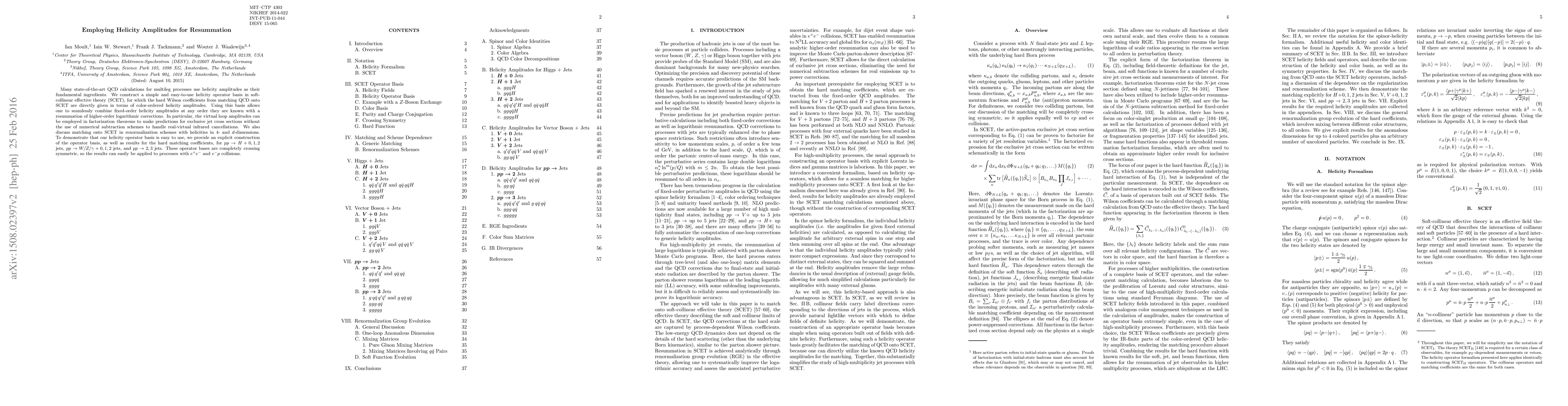 The research employs helicity amplitudes as fundamental ingredients in QCD calculations for multi-leg processes, constructing a simple helicity operator basis in SCET. This basis allows for seamless combination of fixed-order helicity amplitudes with resummation of higher-order logarithmic corrections.