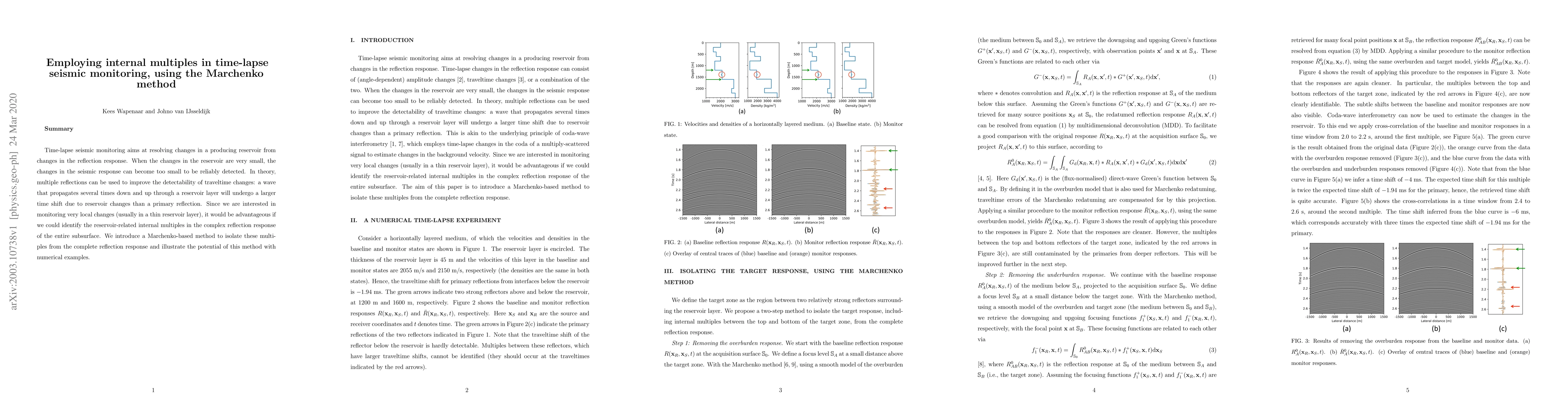 Time-lapse seismic monitoring aims at resolving changes in a producing reservoir from changes in the reflection response. When the changes in the reservoir are very small, the changes in the seismic response can become too small to be reliably detected. In theory, multiple reflections can be used to improve the detectability of traveltime changes: a wave that propagates several times down and up through a reservoir layer will undergo a larger time shift due to reservoir changes than a primary reflection. Since we are interested in monitoring very local changes (usually in a thin reservoir layer), it would be advantageous if we could identify the reservoir-related internal multiples in the complex reflection response of the entire subsurface. We introduce a Marchenko-based method to isolate these multiples from the complete reflection response and illustrate the potential of this method with numerical examples.