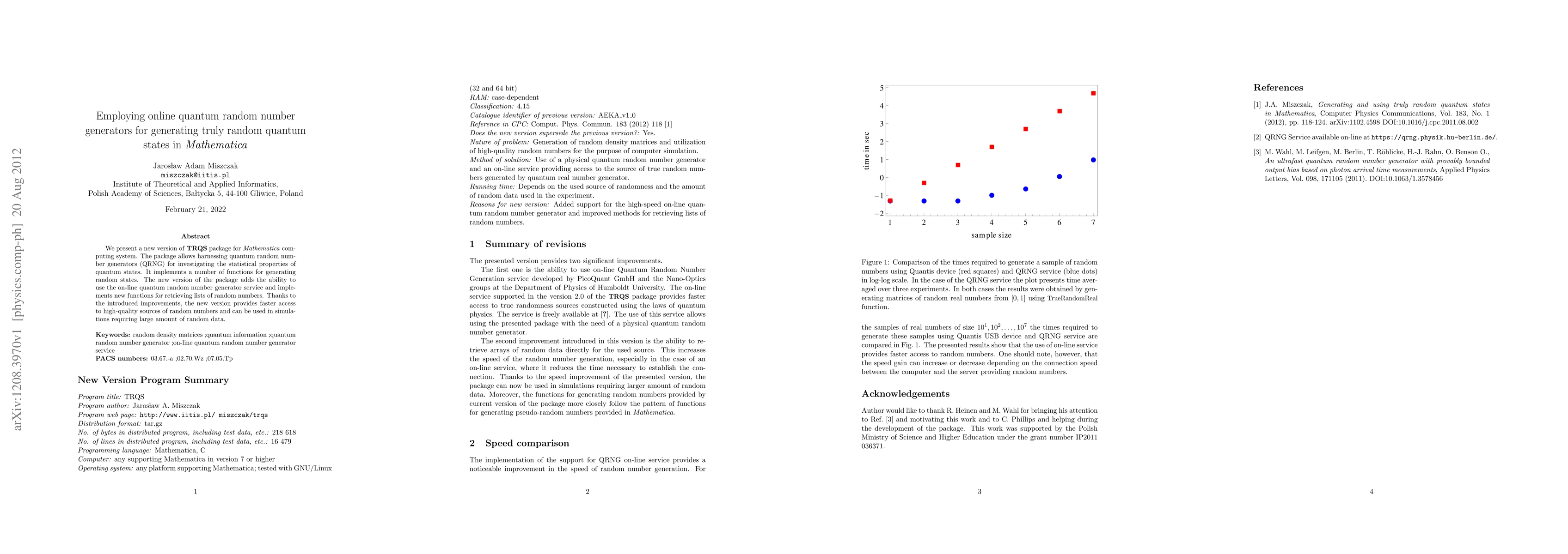 Summary: The new TRQS package for Mathematica integrates online quantum random number generators to produce truly random quantum states, enhancing statistical investigations and enabling faster access to high-quality random data for large-scale simulations.