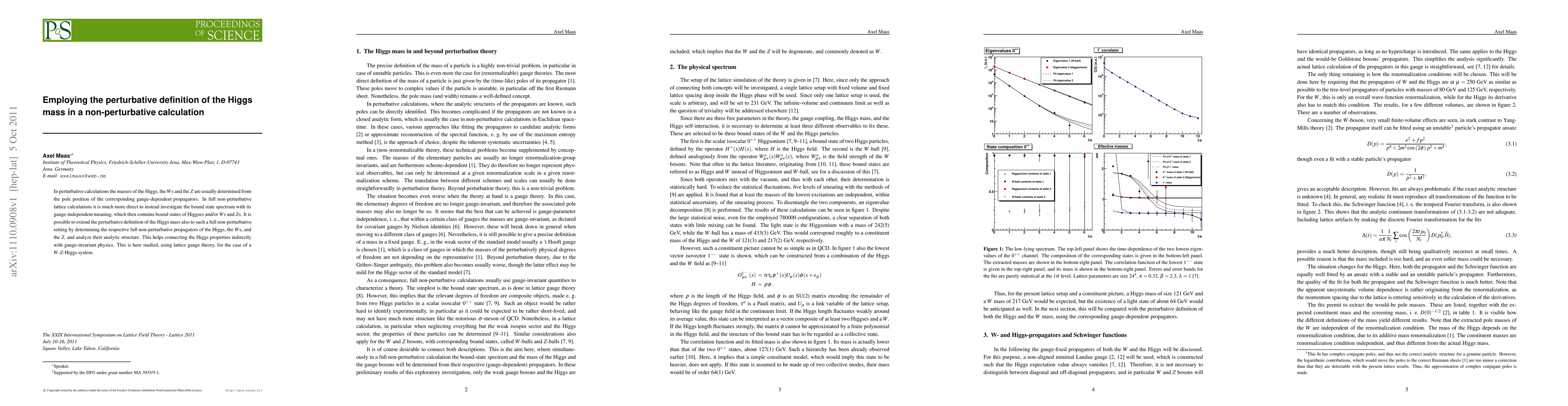 Researchers used lattice gauge theory to study the Higgs mass in a full non-perturbative setting, finding that it can be indirectly connected with gauge-invariant physics through the analysis of propagators' analytic structure.