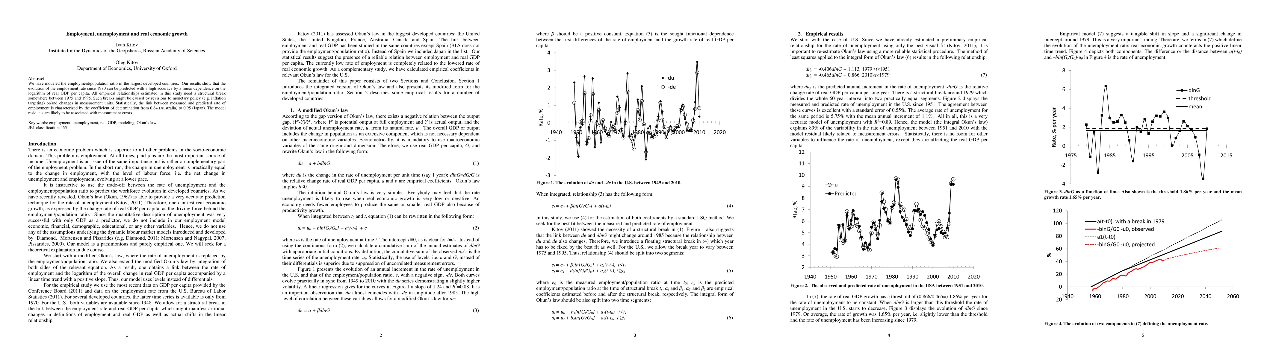 We have modeled the employment/population ratio in the largest developed countries. Our results show that the evolution of the employment rate since 1970 can be predicted with a high accuracy by a linear dependence on the logarithm of real GDP per capita. All empirical relationships estimated in this study need a structural break somewhere between 1975 and 1995. Such breaks might be caused by revisions to monetary policy (e.g. inflation targeting) or/and changes in measurement units. Statistically, the link between measured and predicted rate of employment is characterized by the coefficient of determination from 0.84 (Australia) to 0.95 (Japan). The model residuals are likely to be associated with measurement errors.