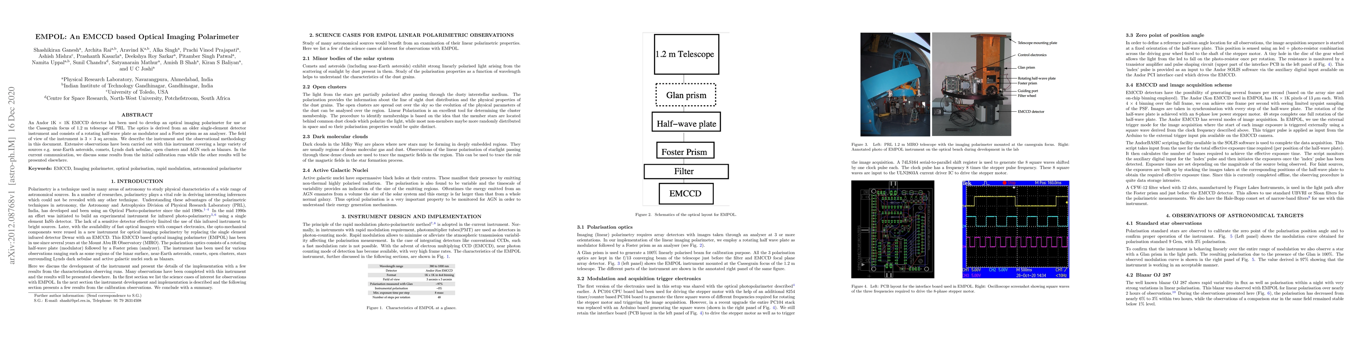 Researchers developed an optical imaging polarimeter using an EMCCD detector to measure polarization of celestial objects with a 1.2m telescope.